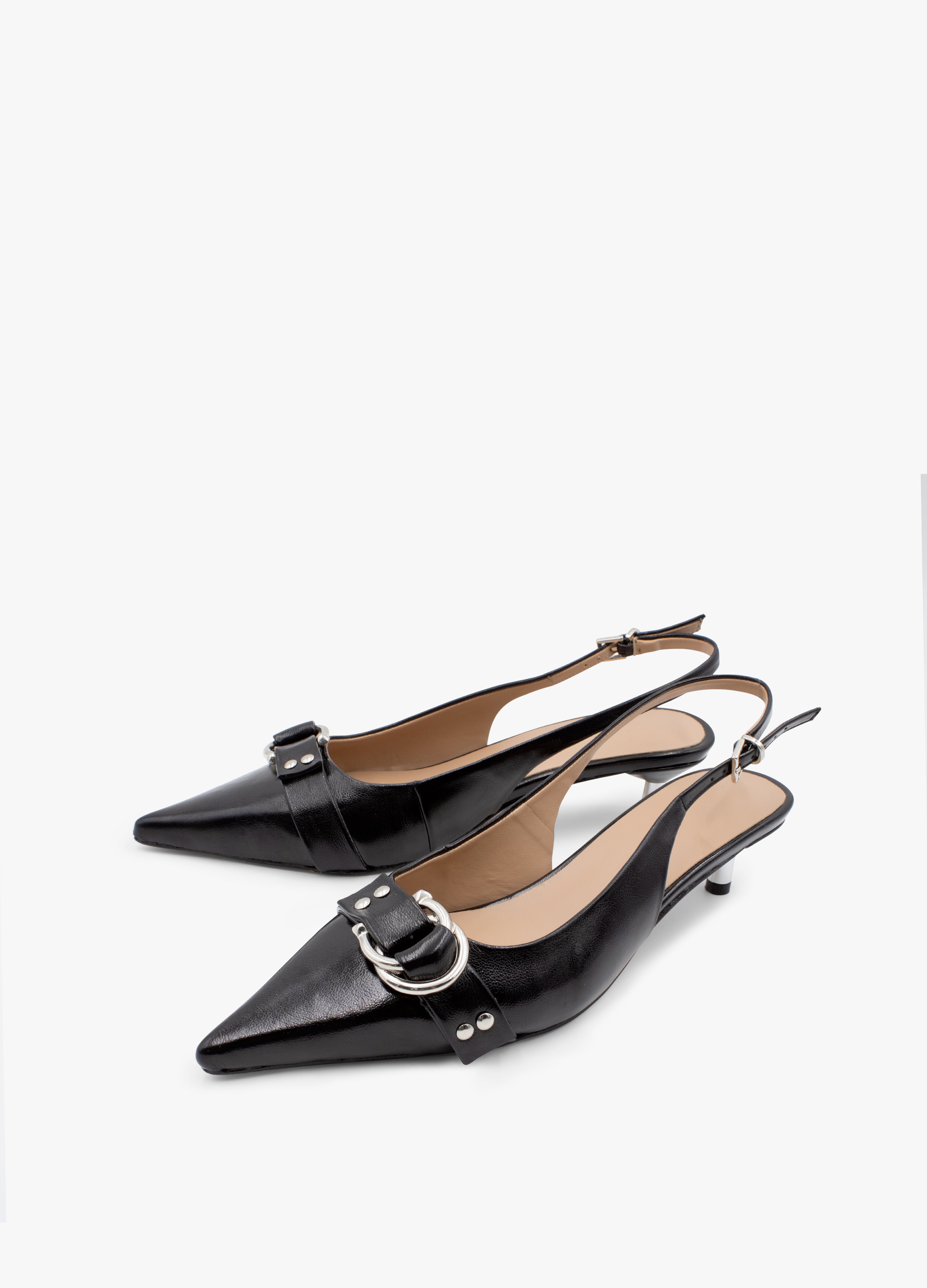 A classic heel with a pointed toe and a heel that does not exceed 6 cm.