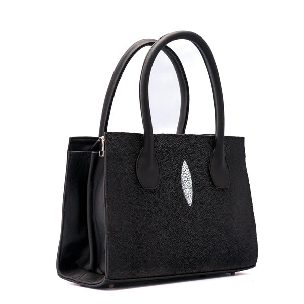 Bolsa para dama en piel genuina de mantarraya genuina ó pitón y También disponible piel krakelada Genuino. Costados en piel de bovino y la parte trasera y asa larga en piel de bovino. Un diseño práctico que cuenta con un compartimento con cierre en su interior.