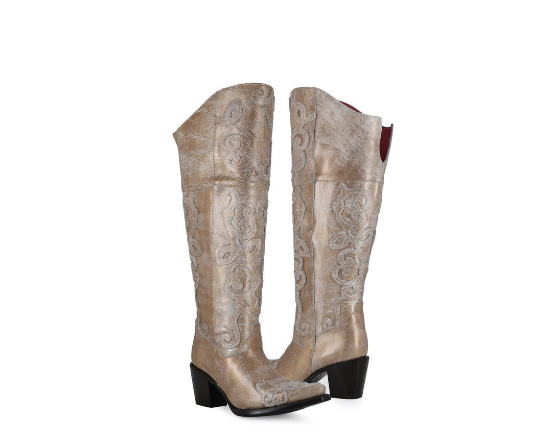 Diseño cowgirl de nuestra línea premium, con corte y forro en piel, ajuste con cierre, pines metálicos y suela de cuero pegada y cosida que garantiza la máxima fijación y durabilidad.