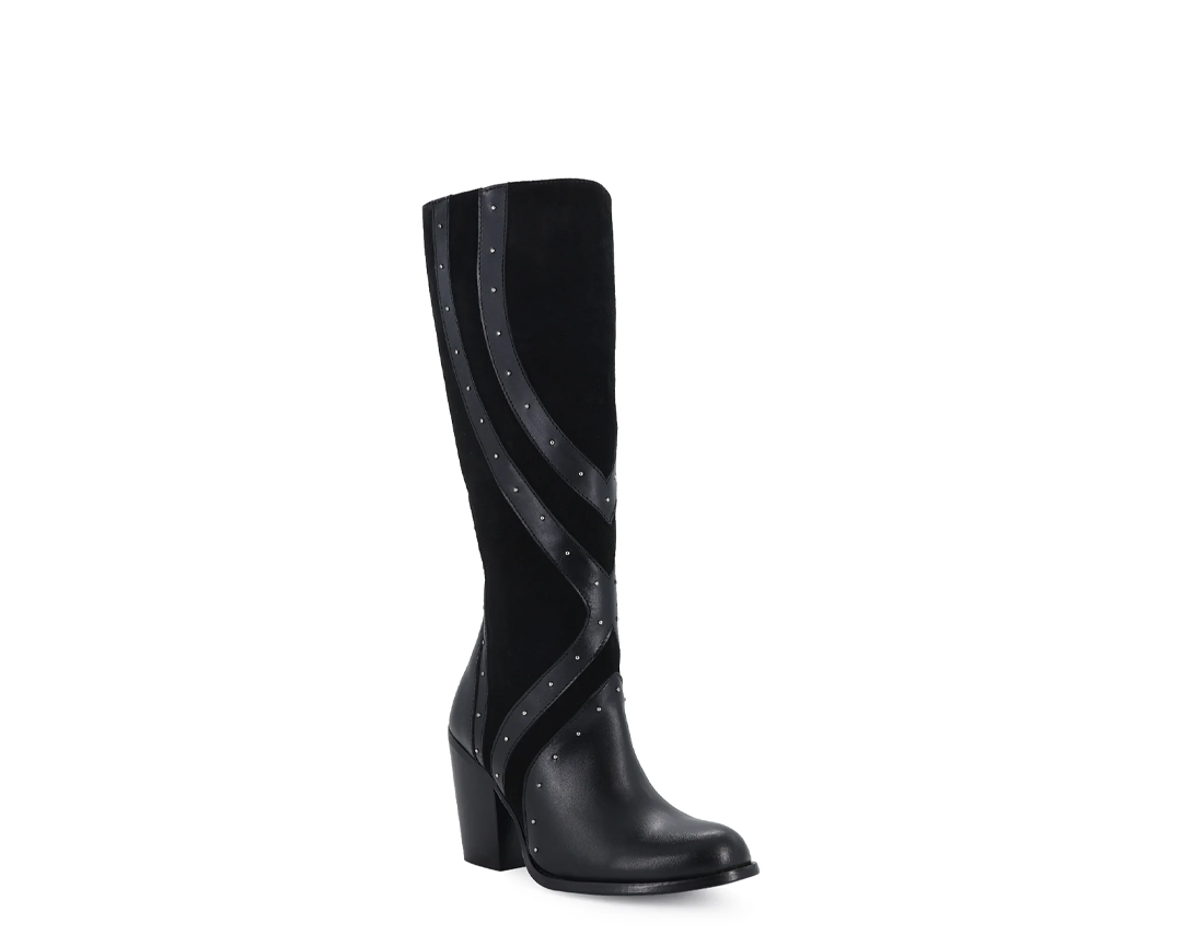 Diseño cowgirl de nuestra línea premium, con corte y forro en piel, ajuste con cierre, pines metálicos y suela de cuero pegada y cosida que garantiza la máxima fijación y durabilidad.