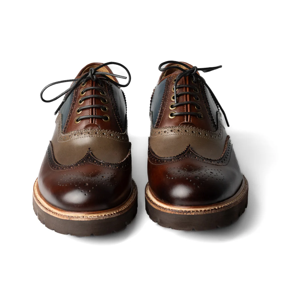El calzado "Brogue" es para ti. Un clásico de punta de ala con detalles perforados que se enorgullece de describir a la perfección su distintivo diseño. Una elección que simboliza elegancia y sofisticación para quienes aprecian la tradición y el estilo en cada paso.