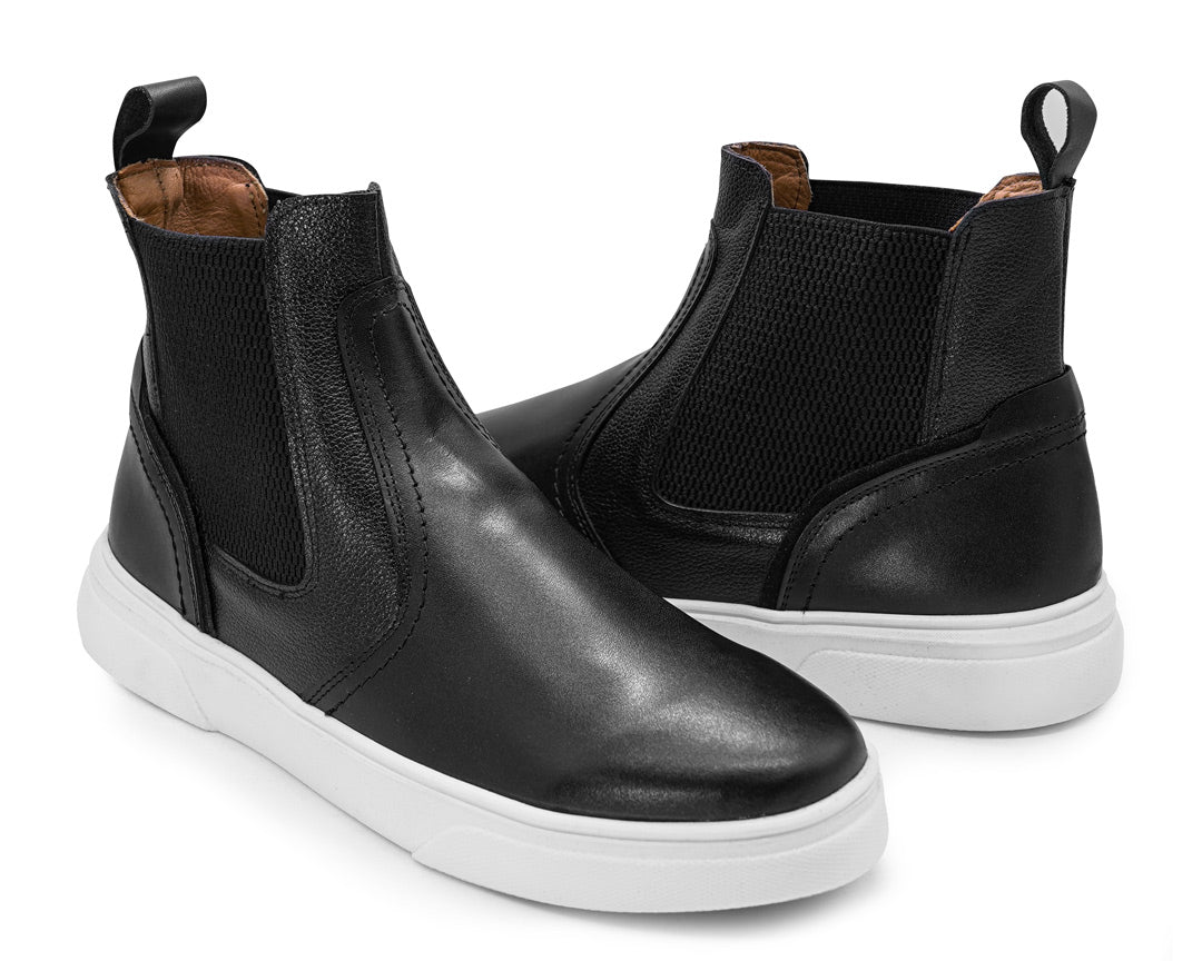 Botín chelsea casual con piel en acabado atanado y flother en corte y forro vacuno, con ajuste de resorte, plantilla multiconfort y suela tr.