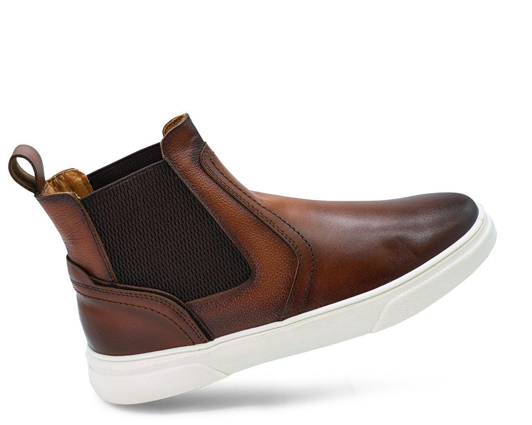 Botín chelsea casual con piel en acabado atanado y flother en corte y forro vacuno, con ajuste de resorte, plantilla multiconfort y suela tr.