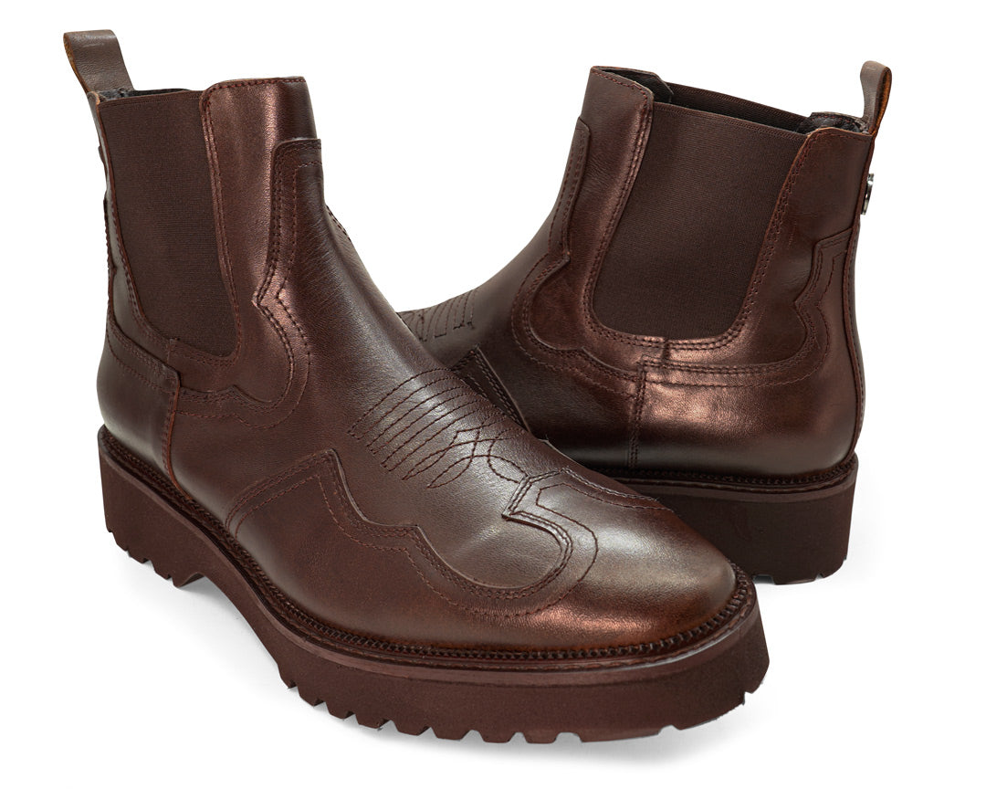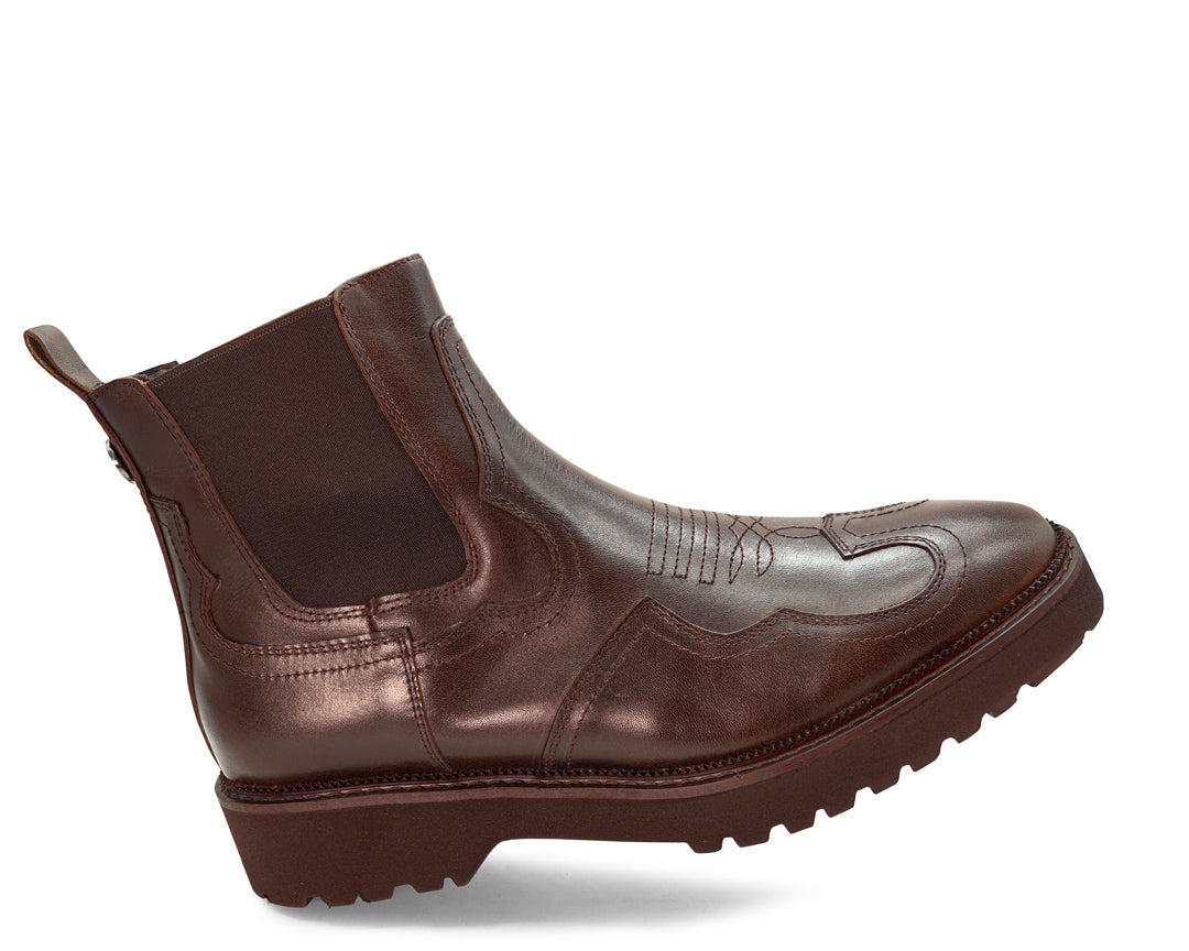 Chelsea vaquera de piel atanada, plantilla de confort, ajuste con resorte, con suela de eva pegada, garantiza la mejor fijación y durabilidad.