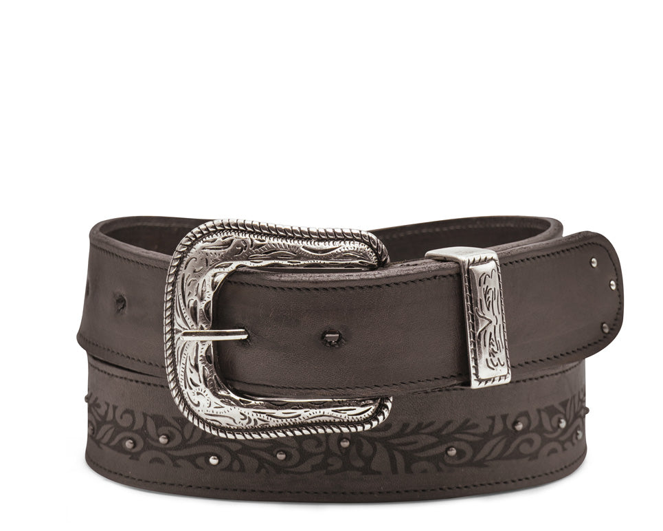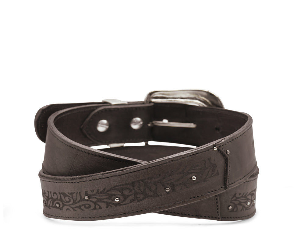 CINTO DE NUESTRA LÍNEA PREMIUM DE DAMA, CUENTA CON HEBILLA DESMONTABLE Y PINES DE ACERO INOXIDABLE, CON ADORNOS GRABADOS A LASER.