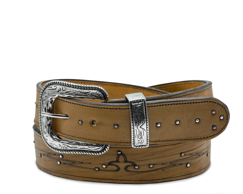 CINTO DE NUESTRA LÍNEA PREMIUM DE DAMA, CUENTA CON HEBILLA DESMONTABLE Y PINES DE ACERO INOXIDABLE, CON ADORNOS GRABADOS A LASER.