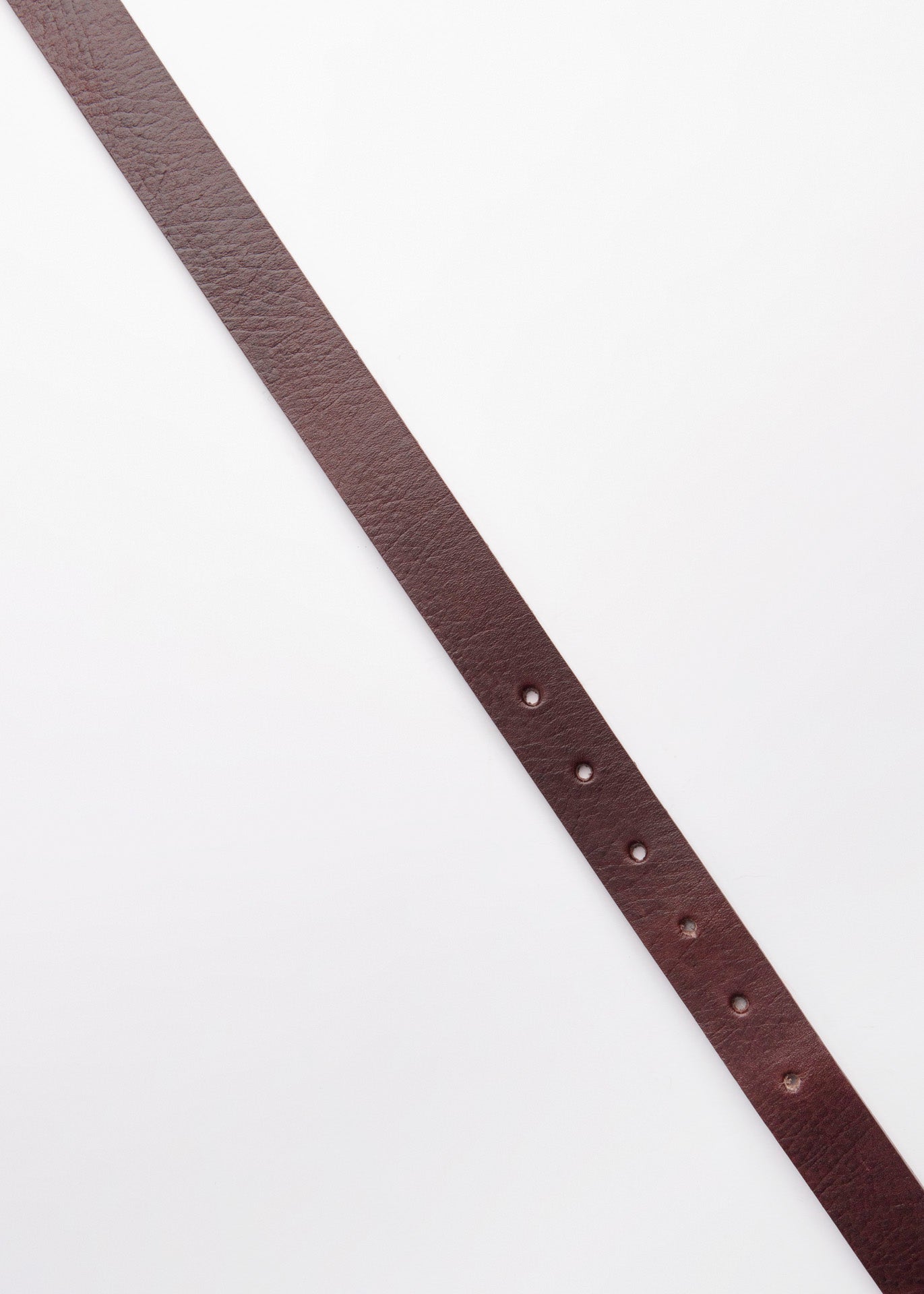 Confeccionado 100% piel, este cinturón luce un tono camel natural que se adapta a cualquier estilo, aportando calidez y autenticidad. Su acabado mate resalta la veta única de la piel, haciendo de cada pieza algo irrepetible.
