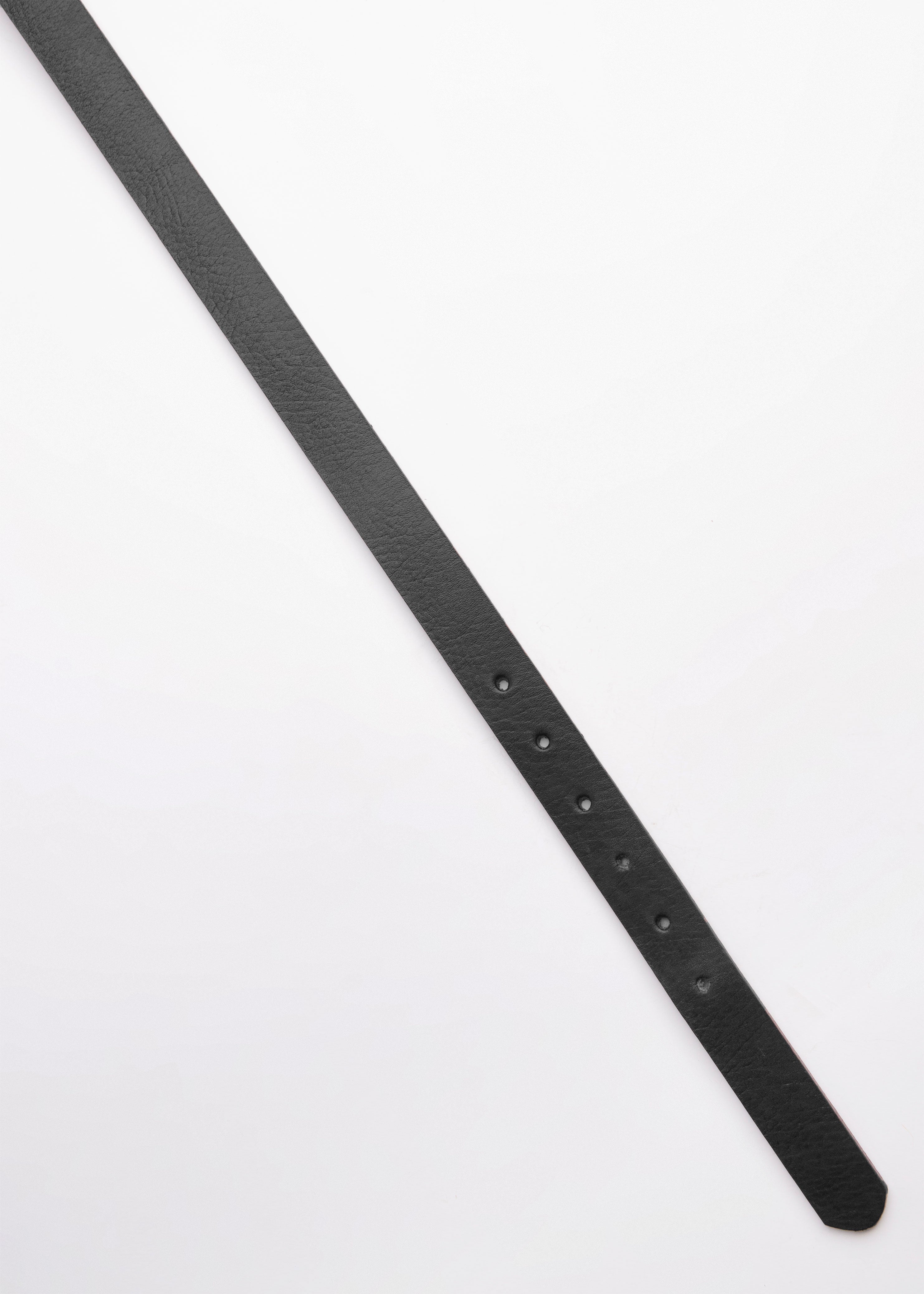 Fabricado en 100% piel, curtida y teñida en un tono negro mate que realza su textura, este cinturón ofrece una resistencia superior al desgaste, manteniendo su forma y color con el paso del tiempo. La correa cuenta con un grosor ideal para brindar firmeza y comodidad, adaptándose con facilidad tanto a looks casuales como formales.