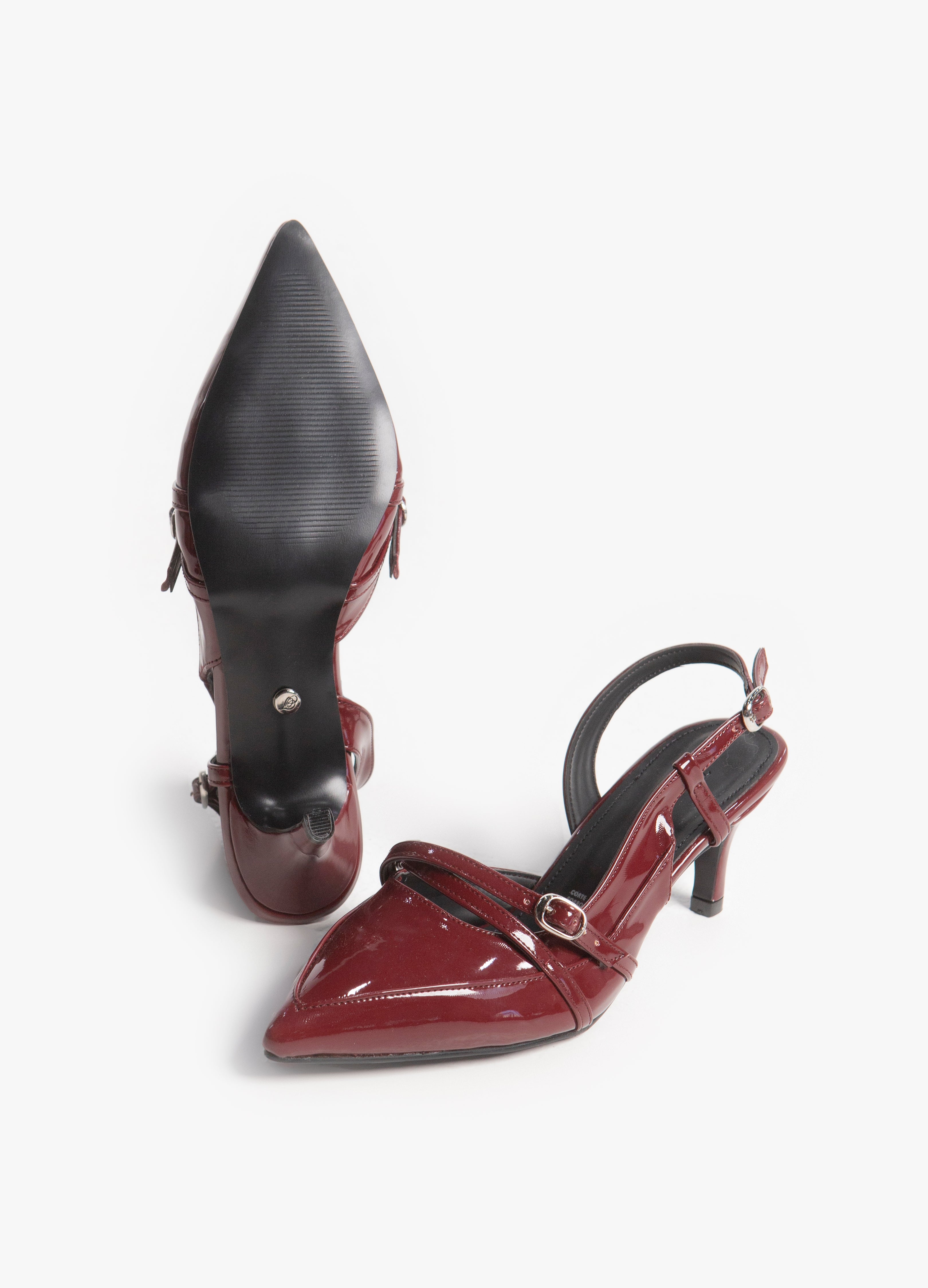 Stileto para dama en color rojo charol con correas ajustables, tacón de 4 cm Aprox.