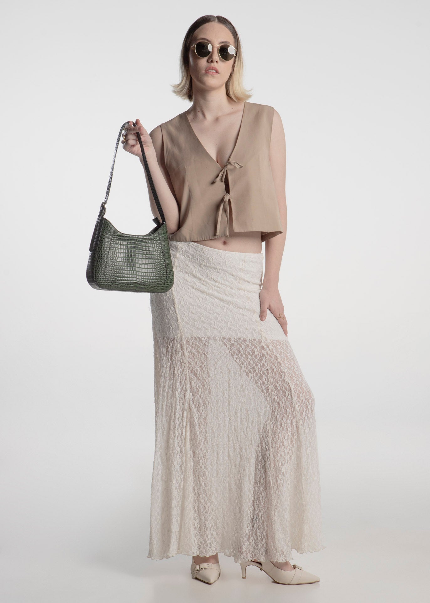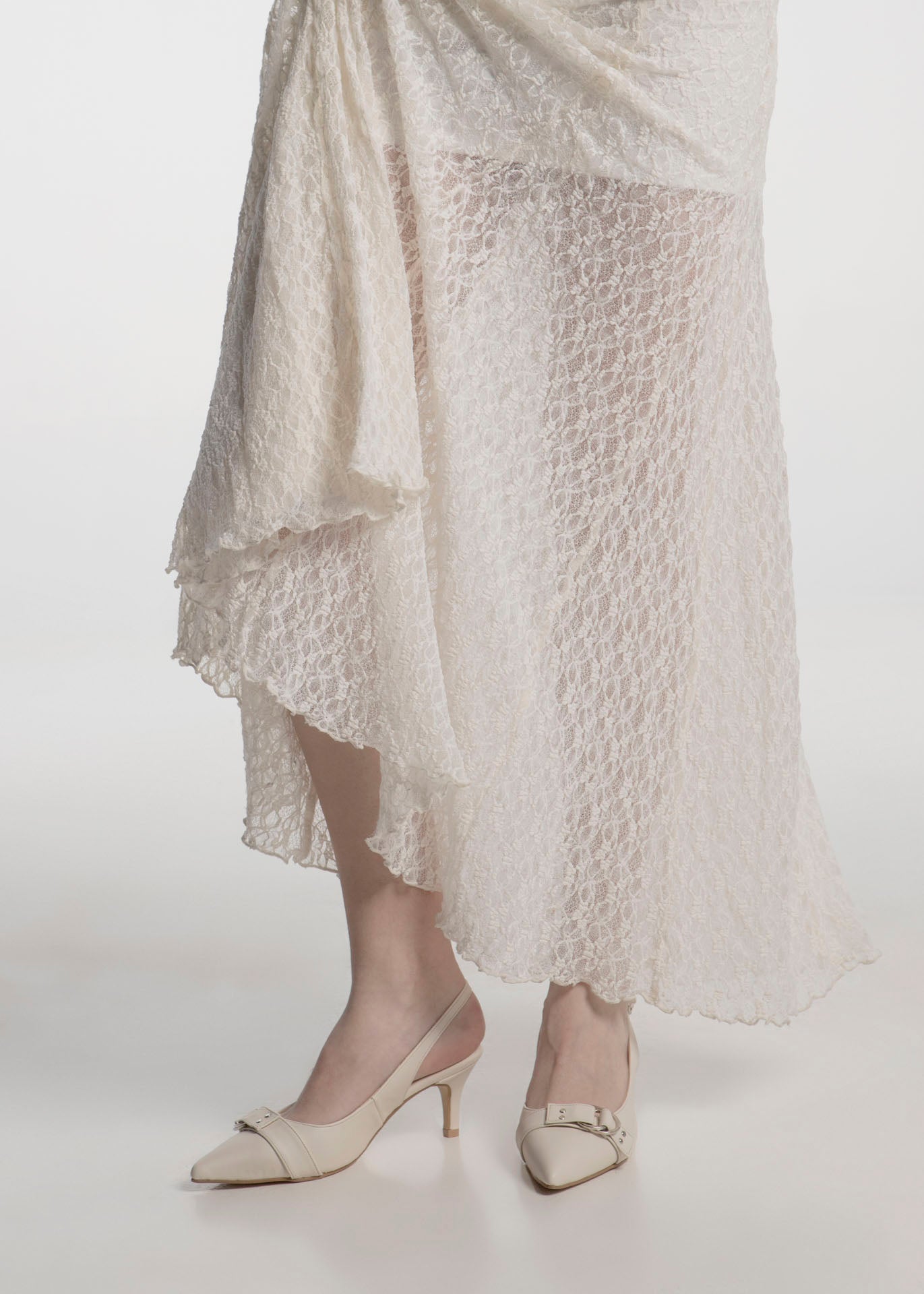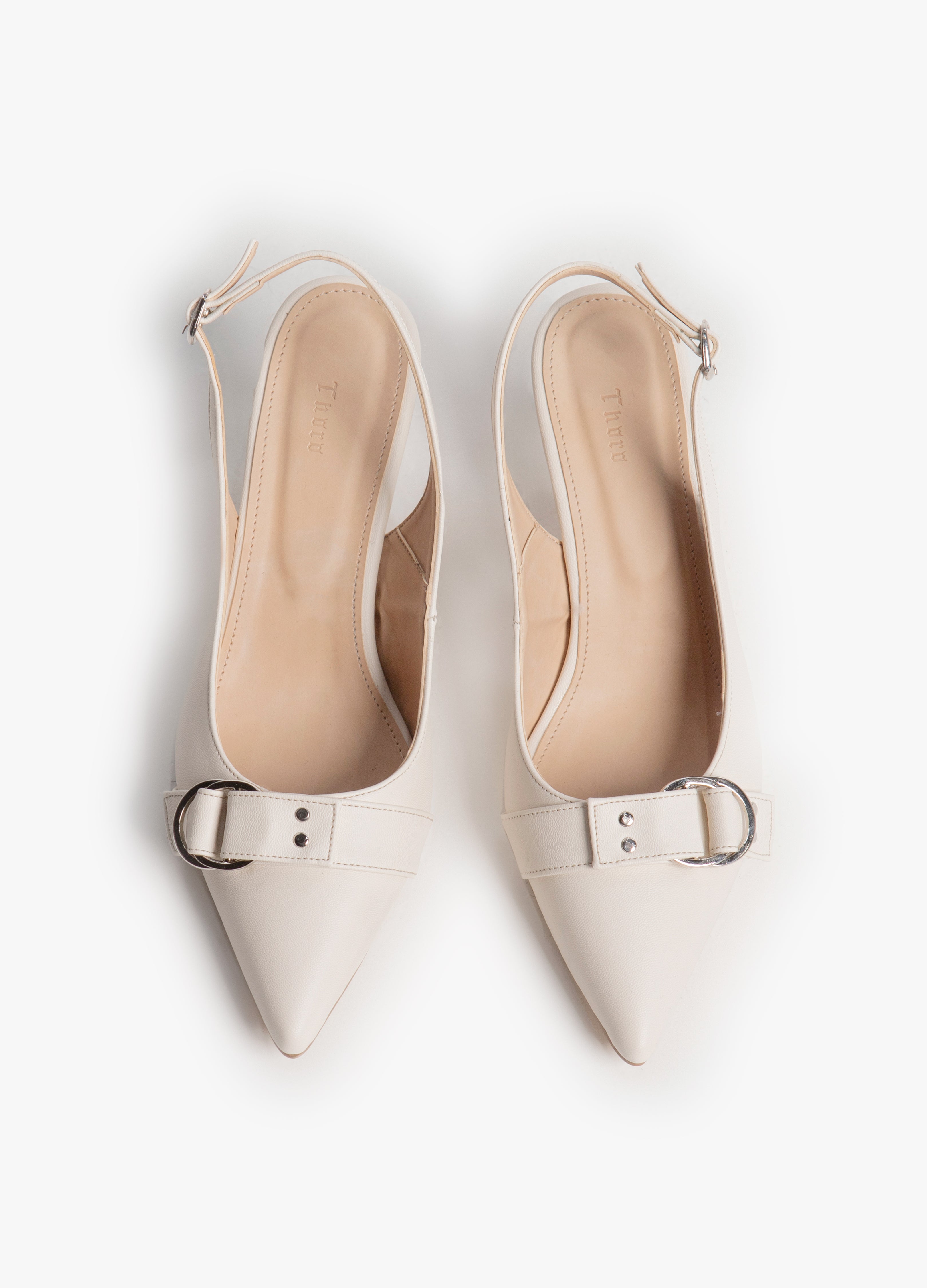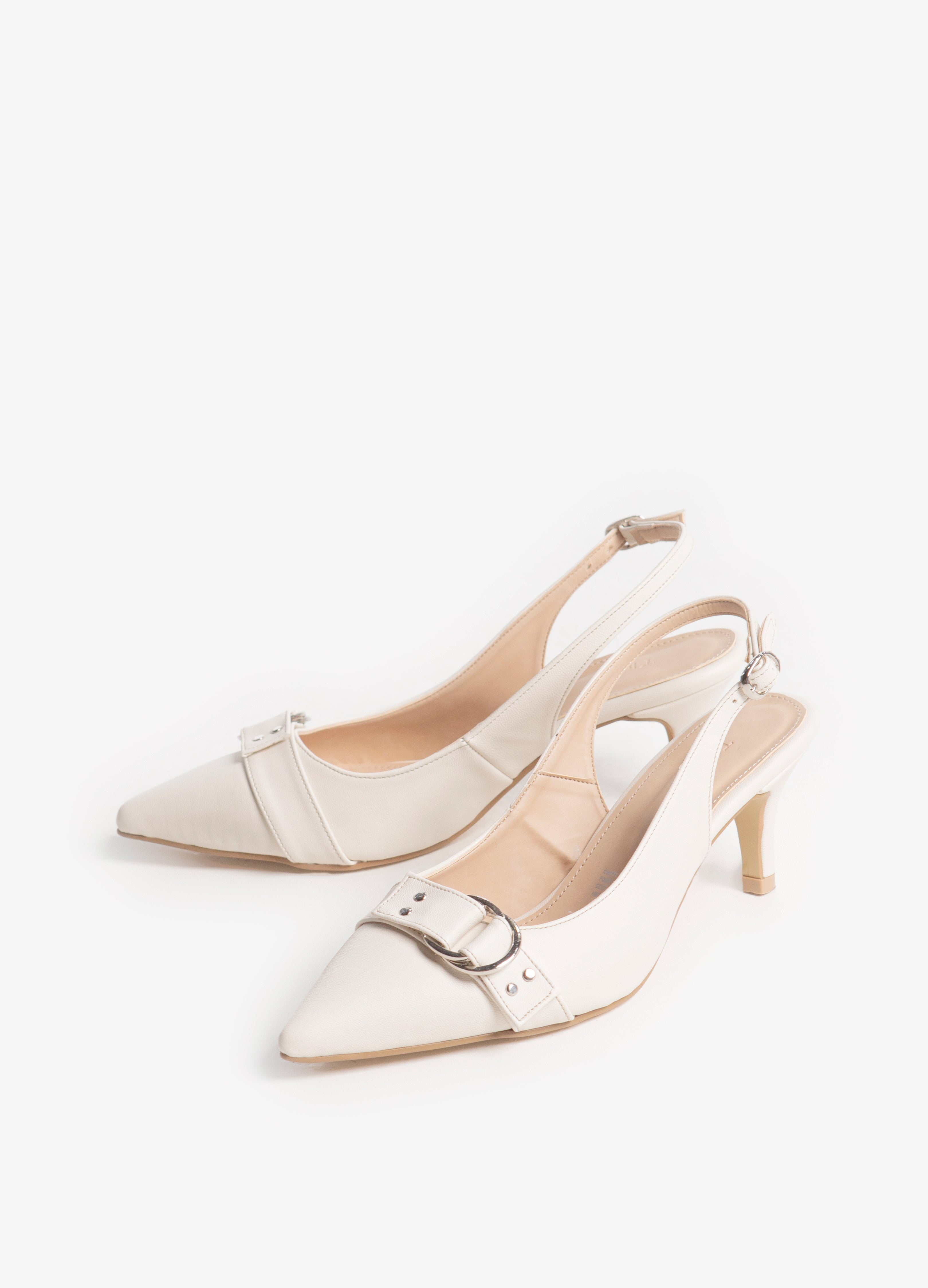 Stileto para dama en color hueso charol con correas ajustables, tacón de 4 cm Aprox.