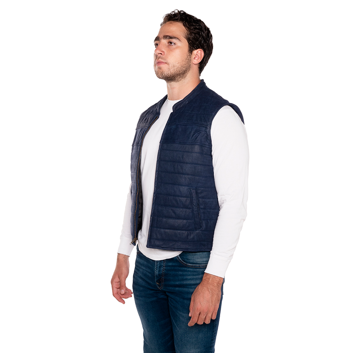 Minimalist design with refined details, ideal for those looking for a lightweight garment with presence. Made from the highest quality pelibuey sheepskin, this vest features horizontal stitching lines that run throughout the garment, providing texture and style without losing the simplicity that characterizes it.