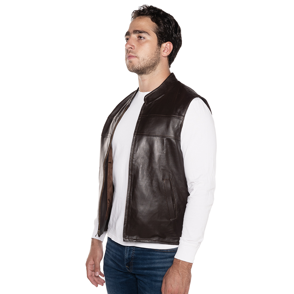 Minimalist and elegant design. This vest, made of fine pelibuey sheepskin, stands out for its clean and soft design, ideal for those who prefer a sober but sophisticated style.