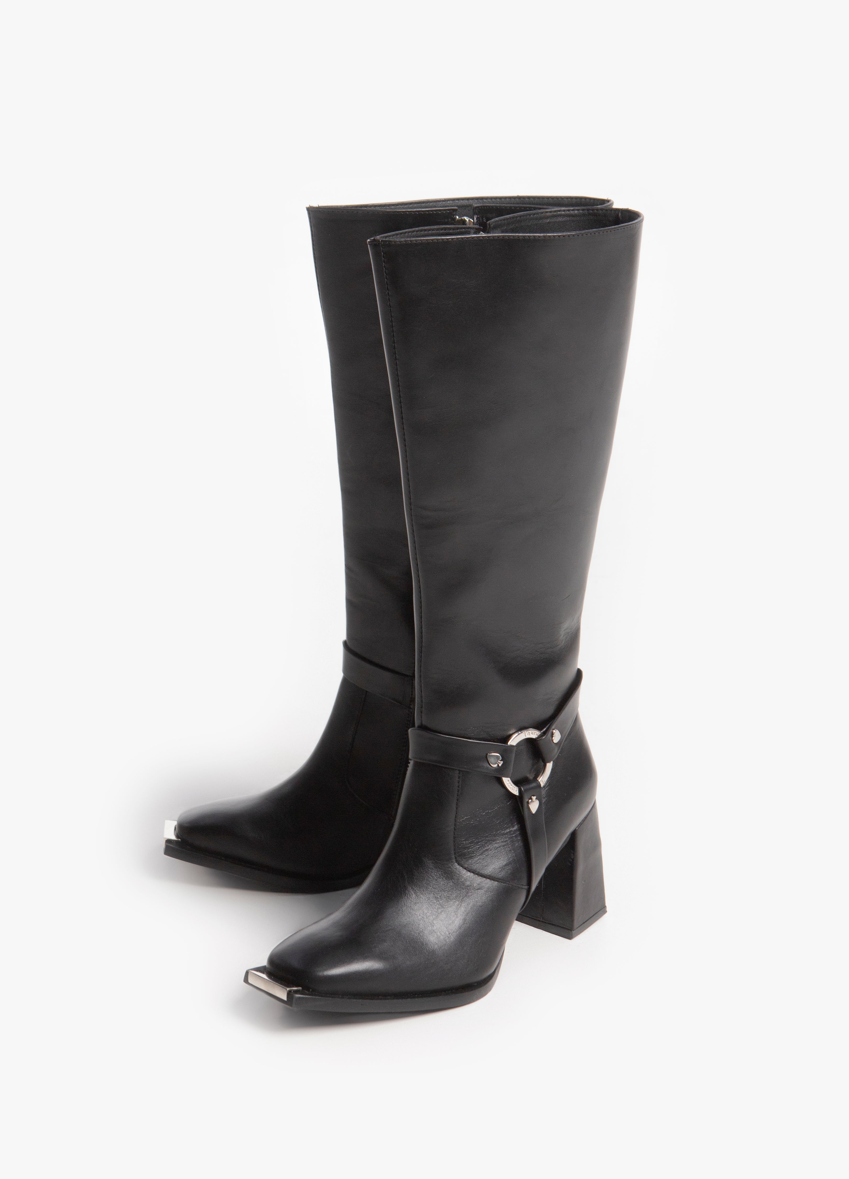 Bota retro estilo Go Go fabricada en piel de res color negro con arnés lateral