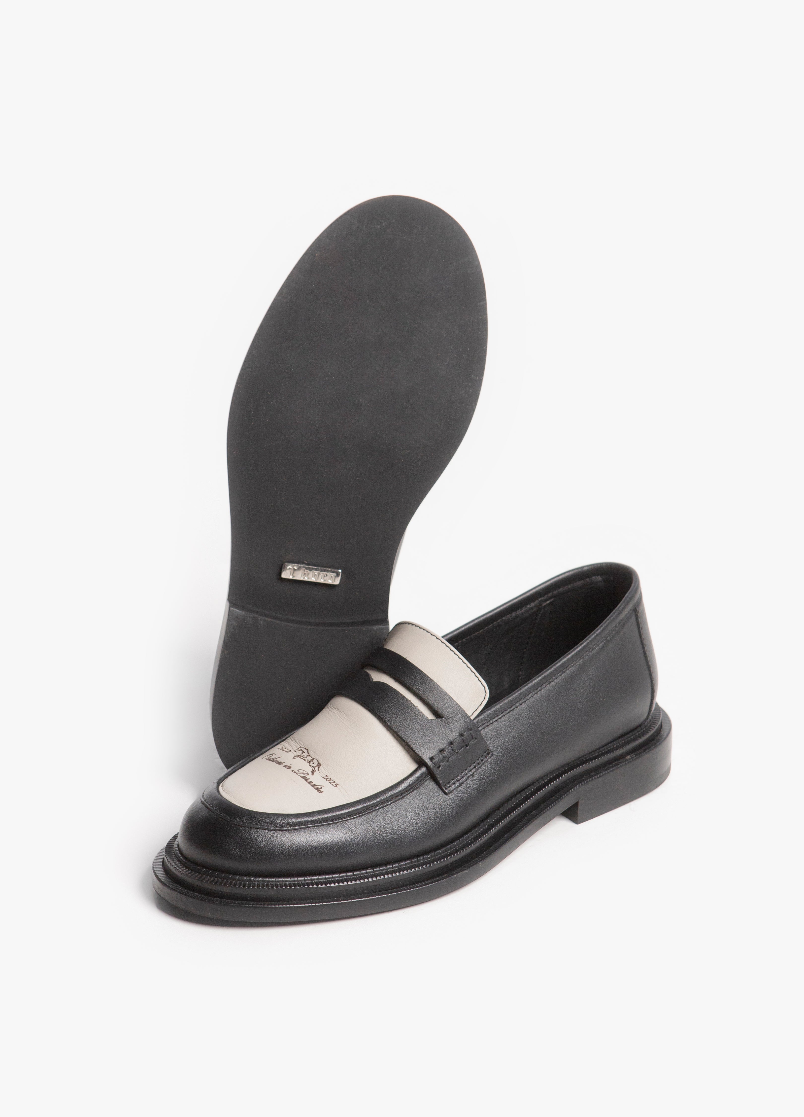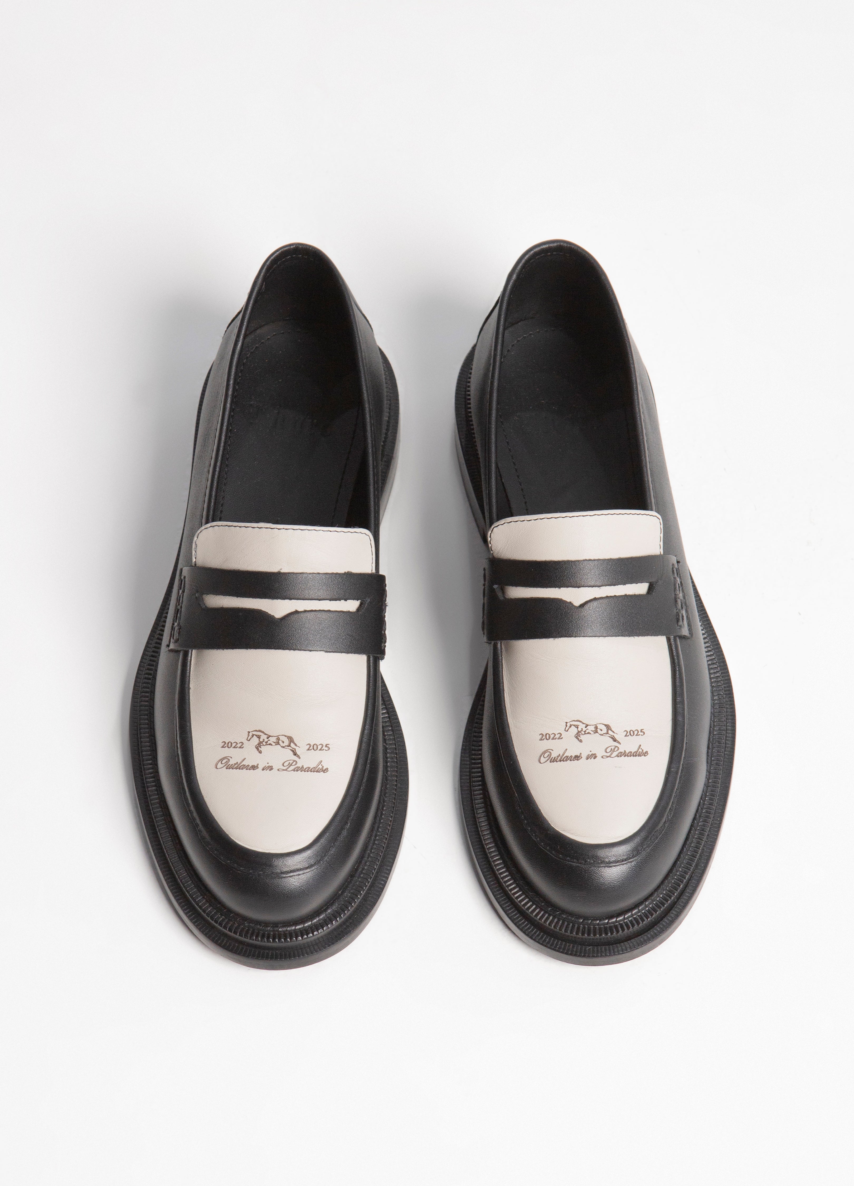 Loafer Chunky fabricado en piel de res blanco y negro con diseño a láser en el empeine y suela estilo doble.