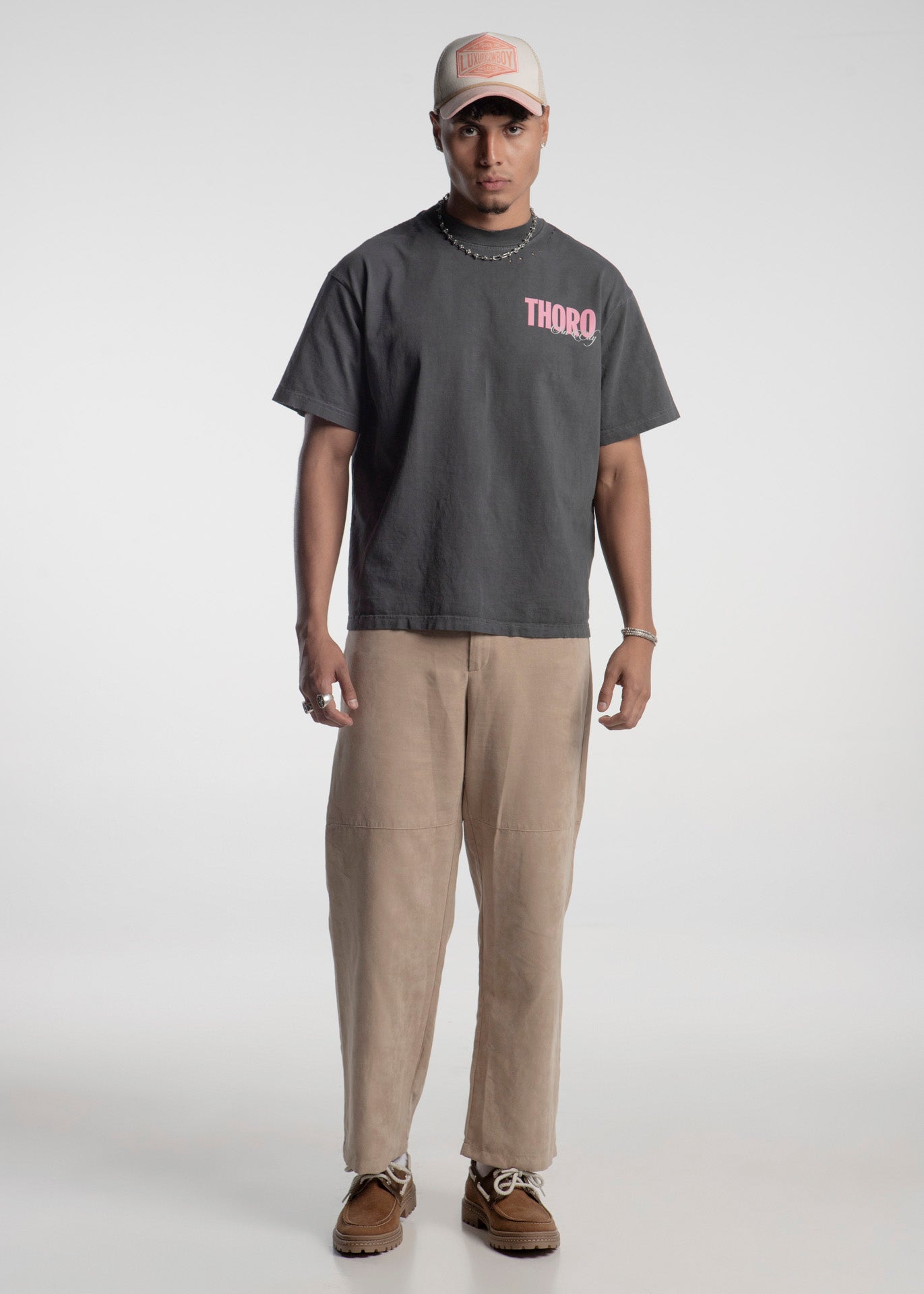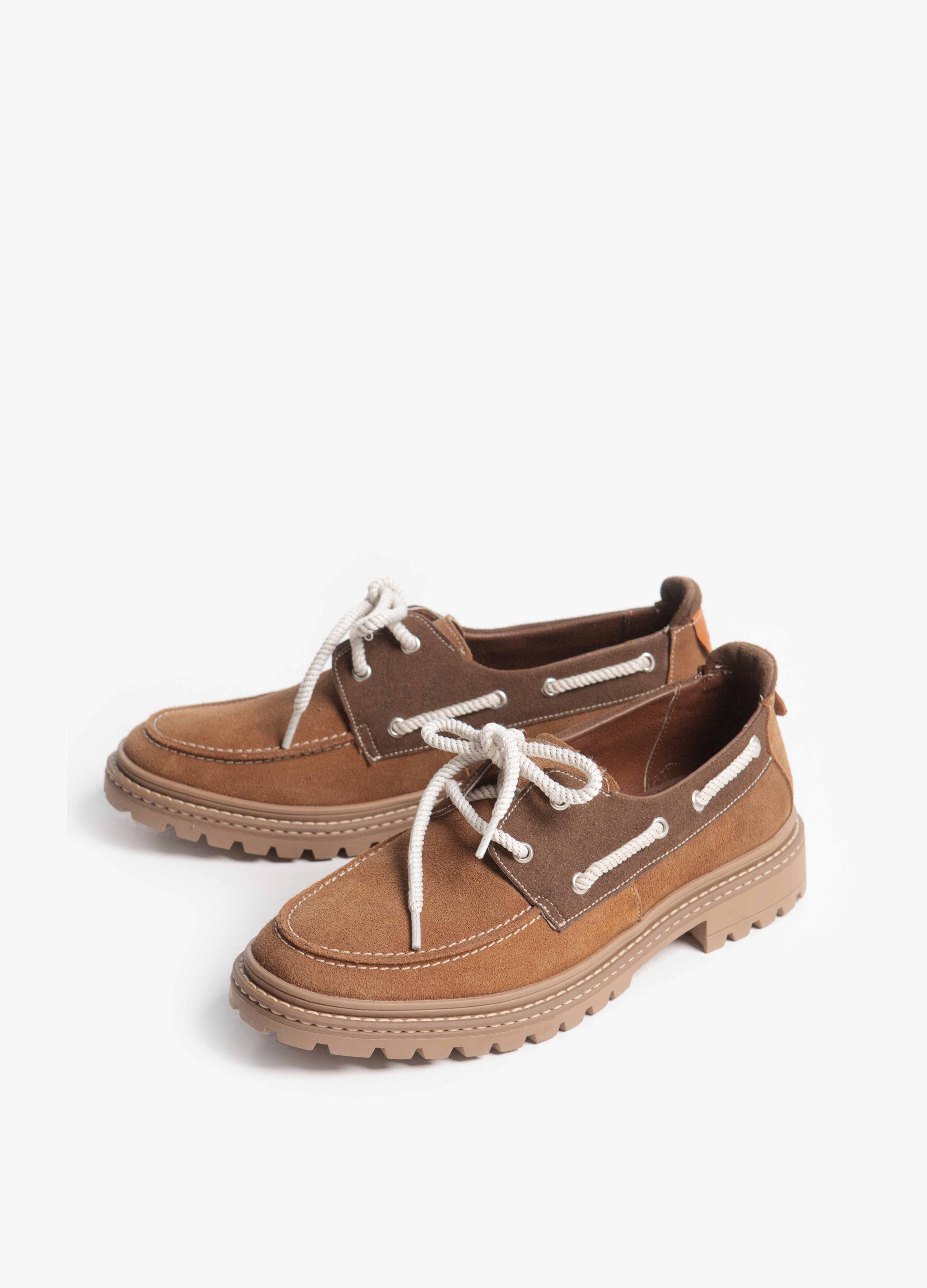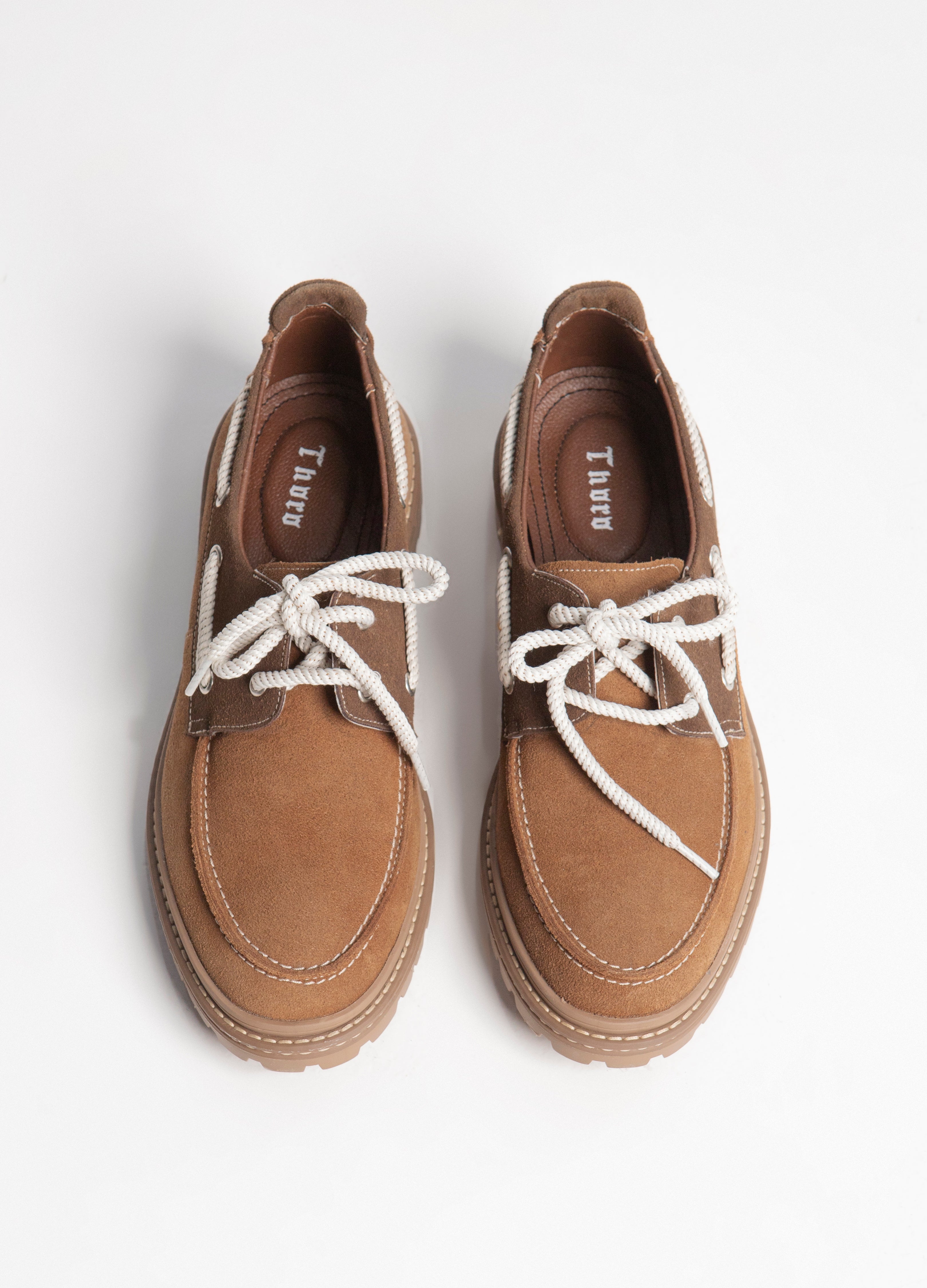 Marinero Chunky fabricado en piel de gamuza bronce con una suela cocida chunky y agujetas estilo soga.