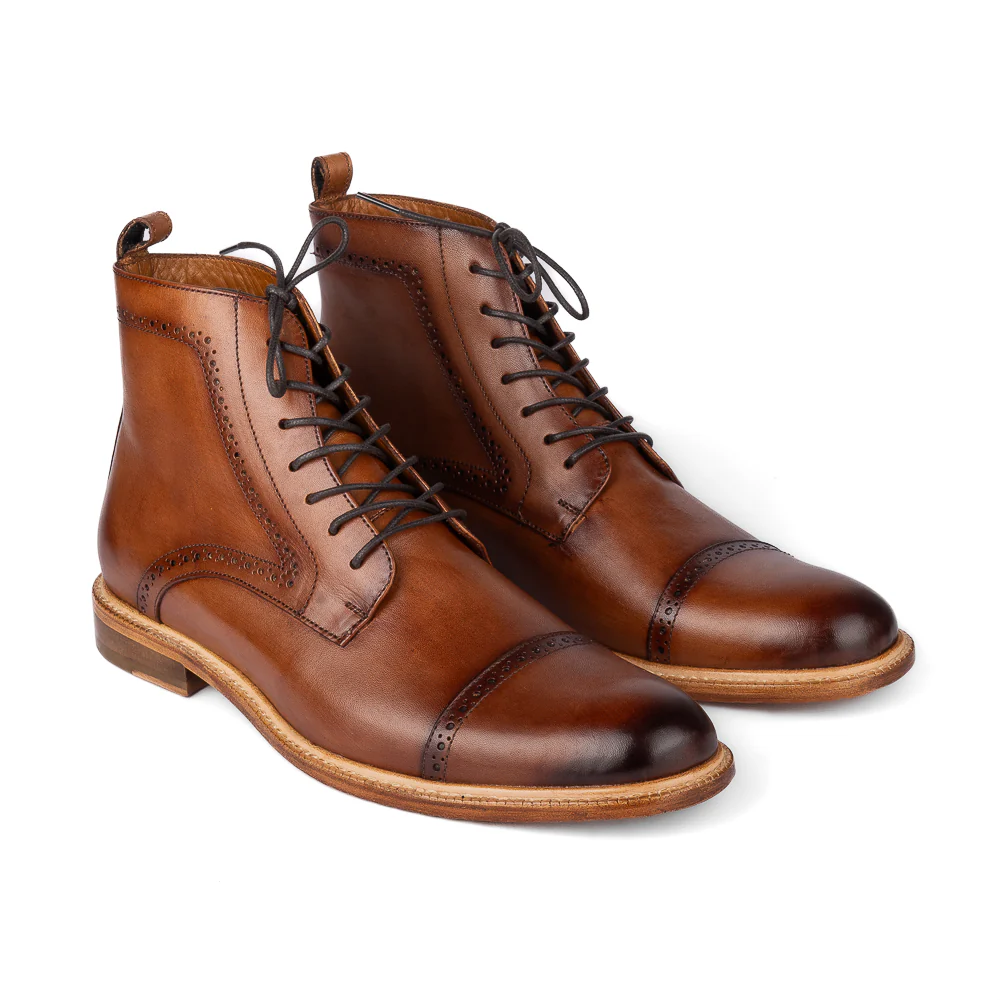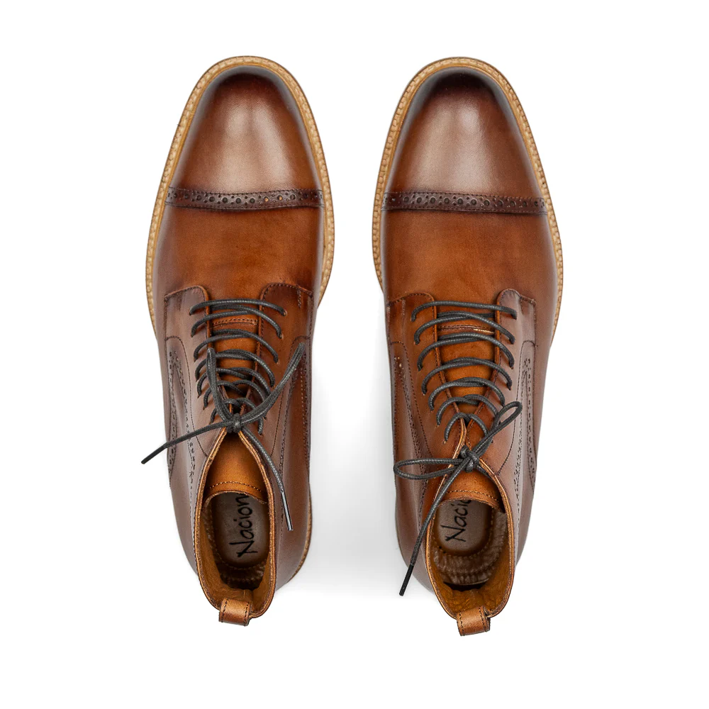 Michelo es la definición perfecta de unas botas casuales. Pintadas a mano y con toques brogue harán que tu estilo se eleve.Elaborado en piel de res, forro de res y suela de cuero cosida al corte.