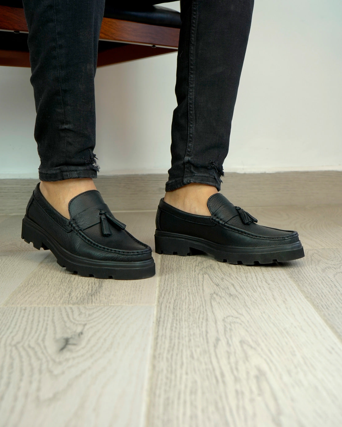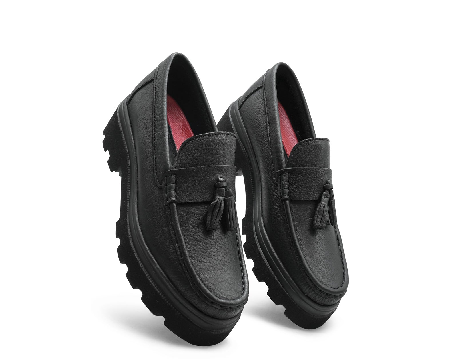 Elegant chunky style design, leather, with decorative leather bells on the instep, ultra light and its sole is glued, guarantees maximum fixation and durability.