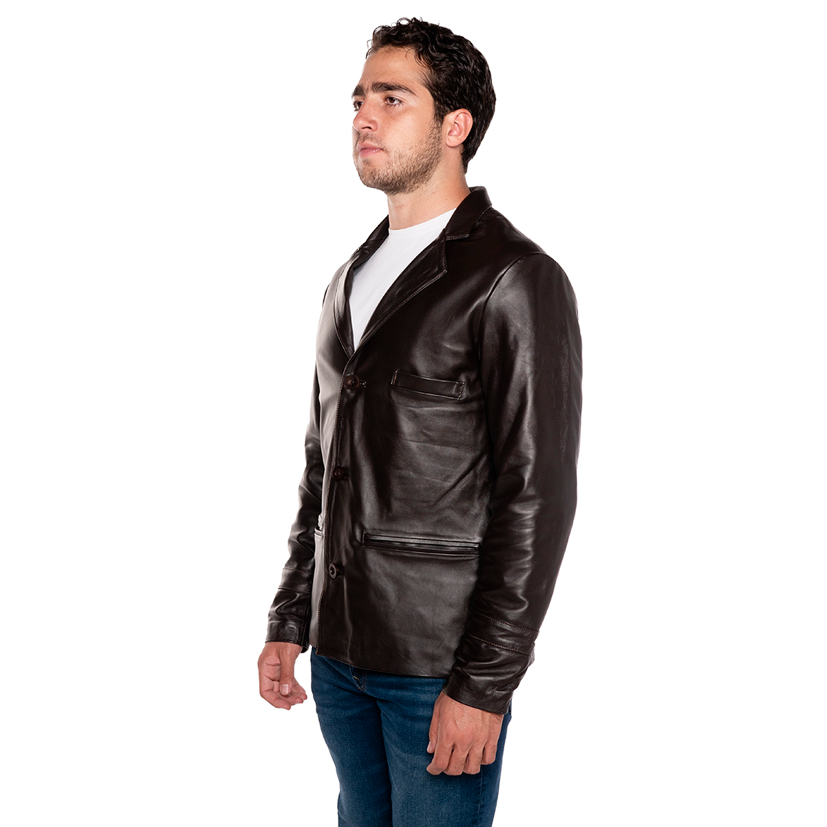 This jacket is ideal for those looking for a formal garment that maintains the luxury and texture of natural leather, perfect for formal events or situations where distinction and class are required.