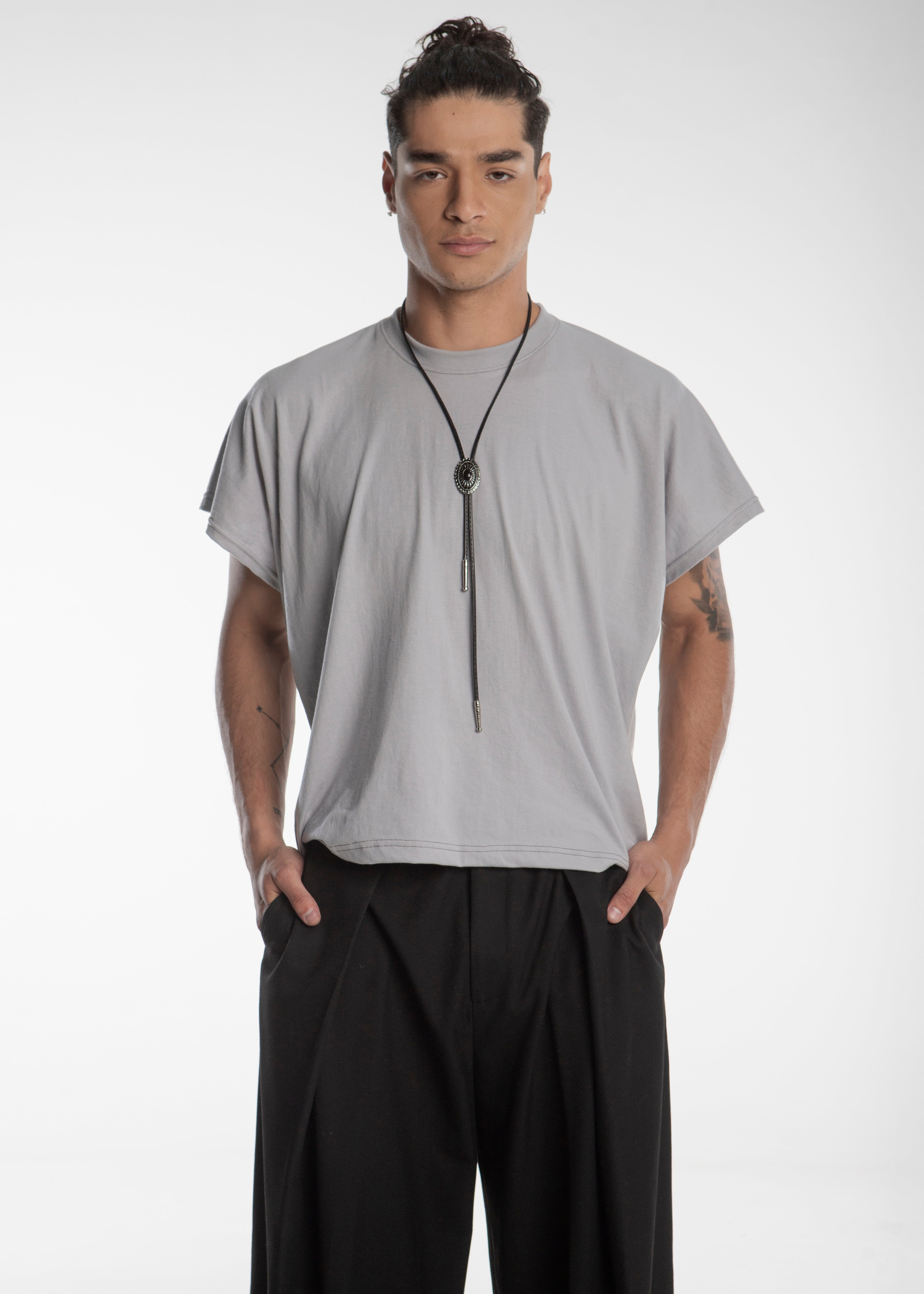 Playera 100% algodón en color gris con manga japonesa o dolman y en la espalda las layendas "La Bestia, Fight Club, Broke in the desert" acompañado de 2 toros boxeando en color negro. Impresión en Serigrafía.