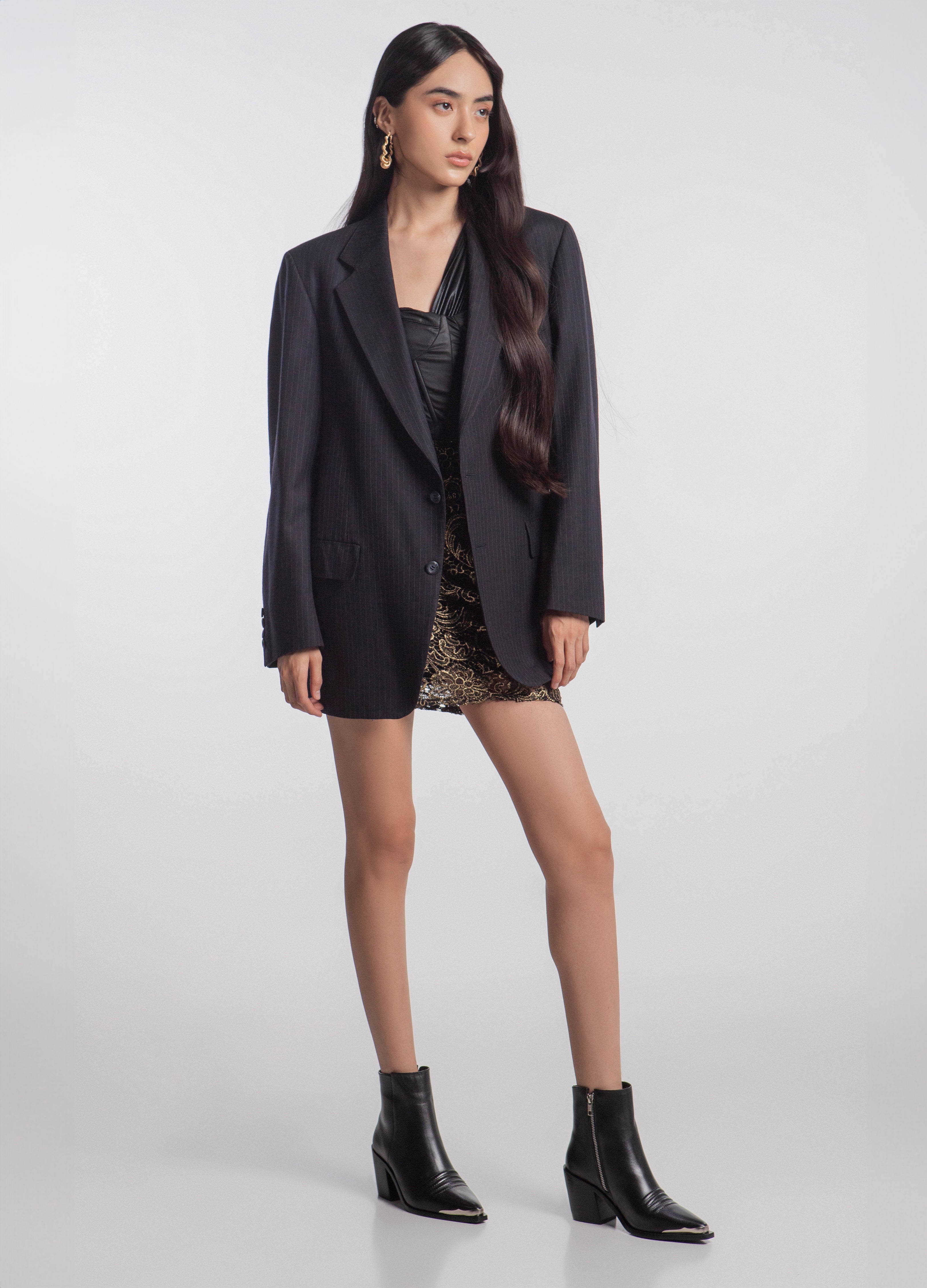Chelsea boot made of black cowhide with a Cuban heel, embroidered reliefs on the instep, metal side closure and metal toe.