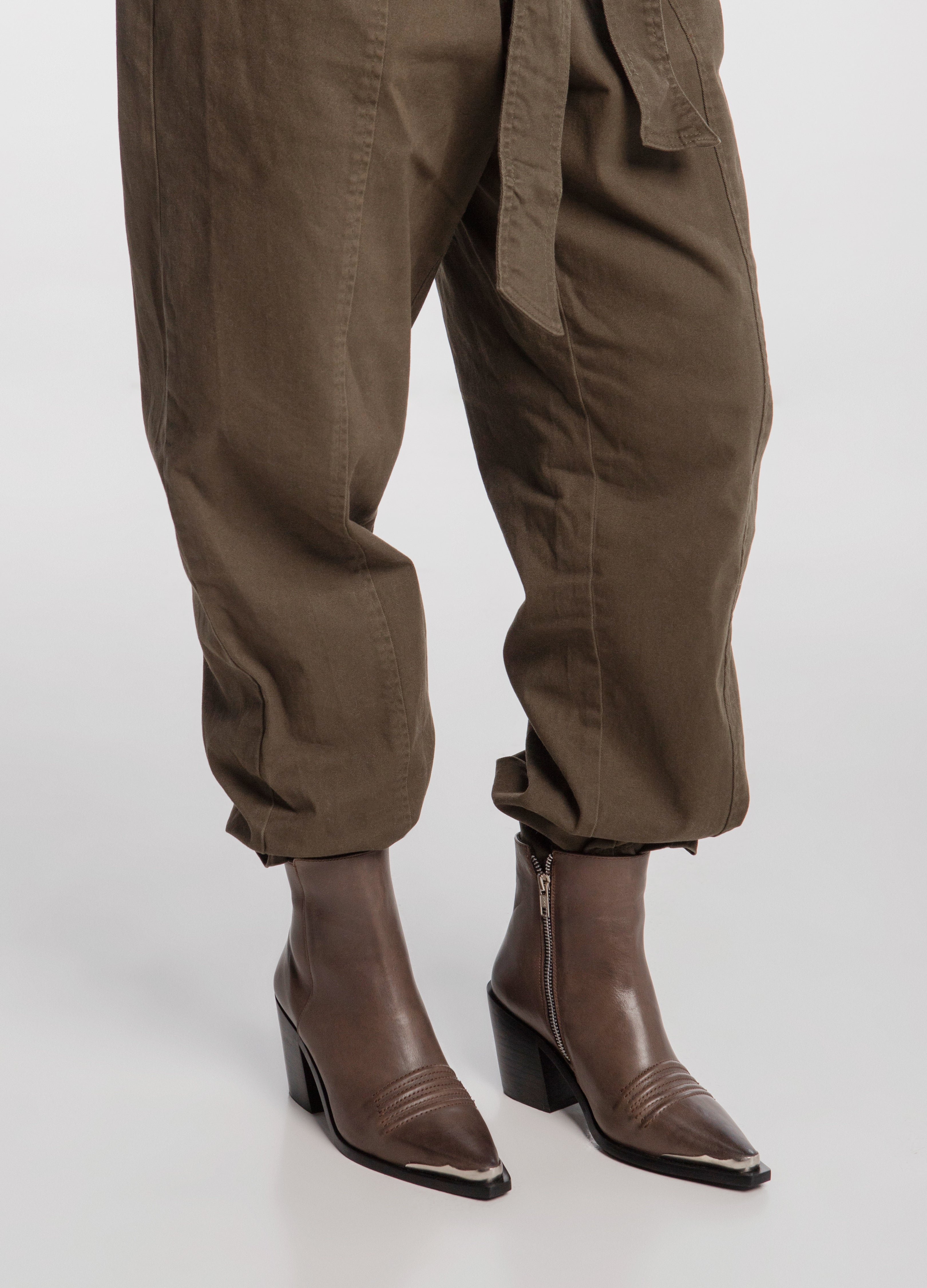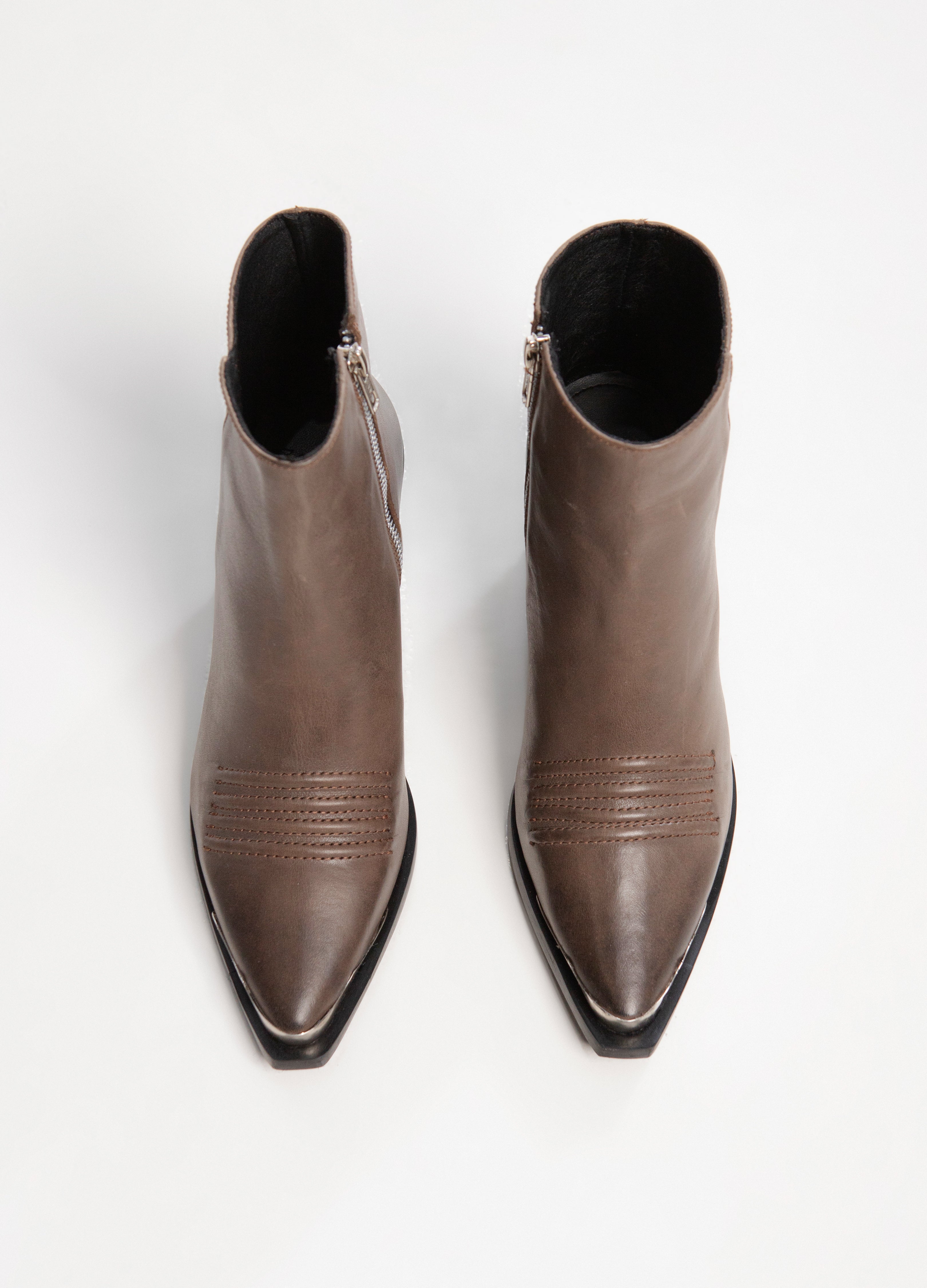 Chelsea boot made of grey cowhide with a Cuban heel, embroidered reliefs on the instep, metal side closure and metal toe.