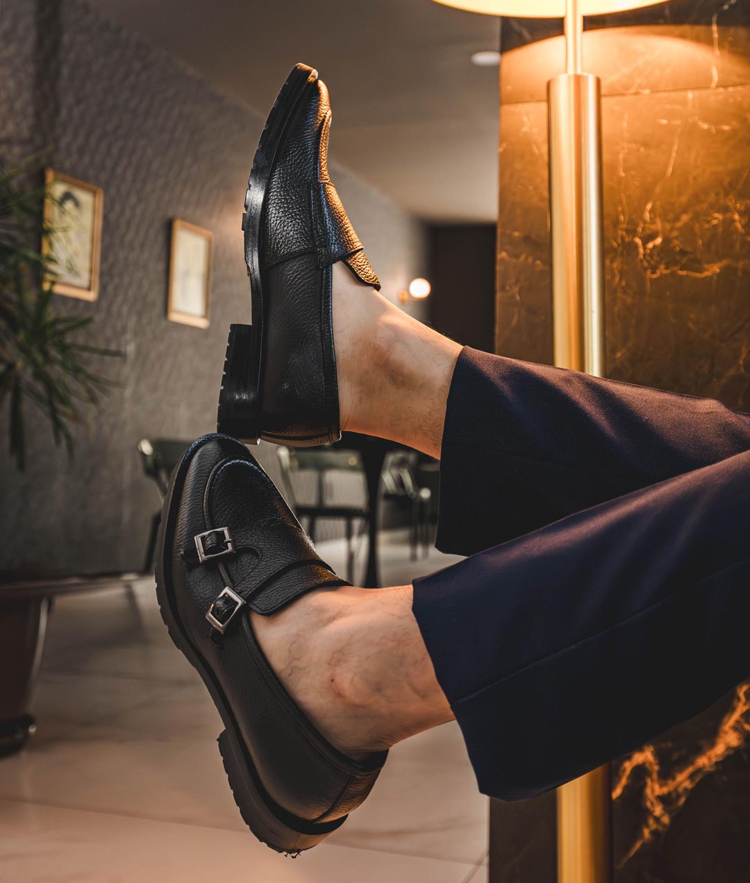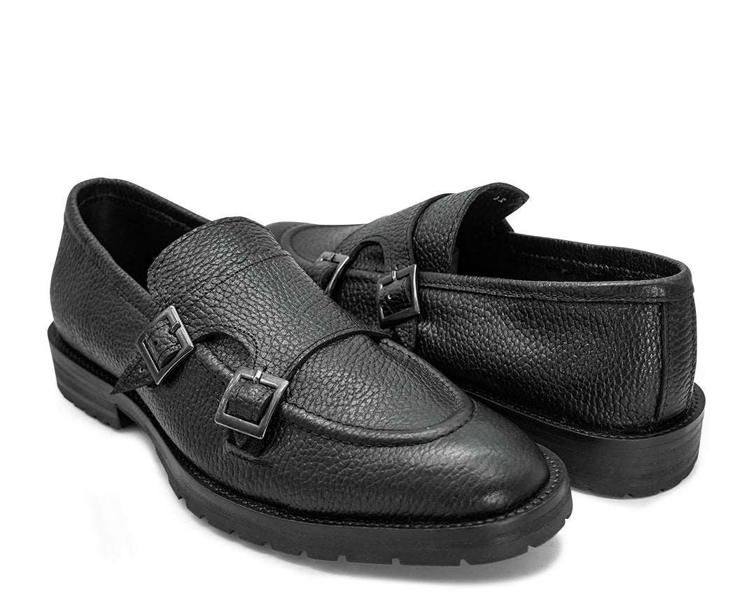 Monkstrap design, flother-finished leather, adjustment with steel buckles, ultra-light and its glued sole guarantees maximum support and durability.