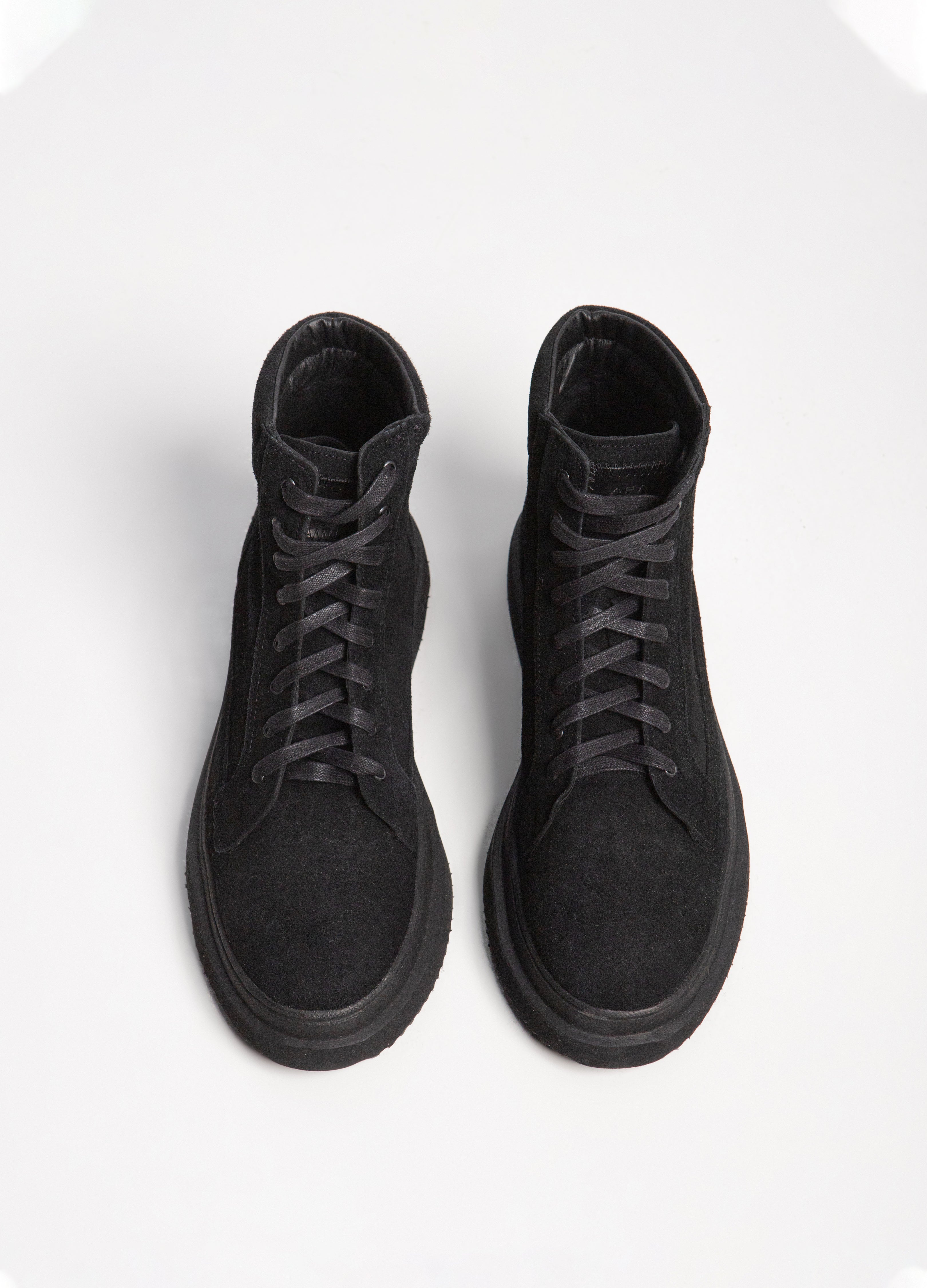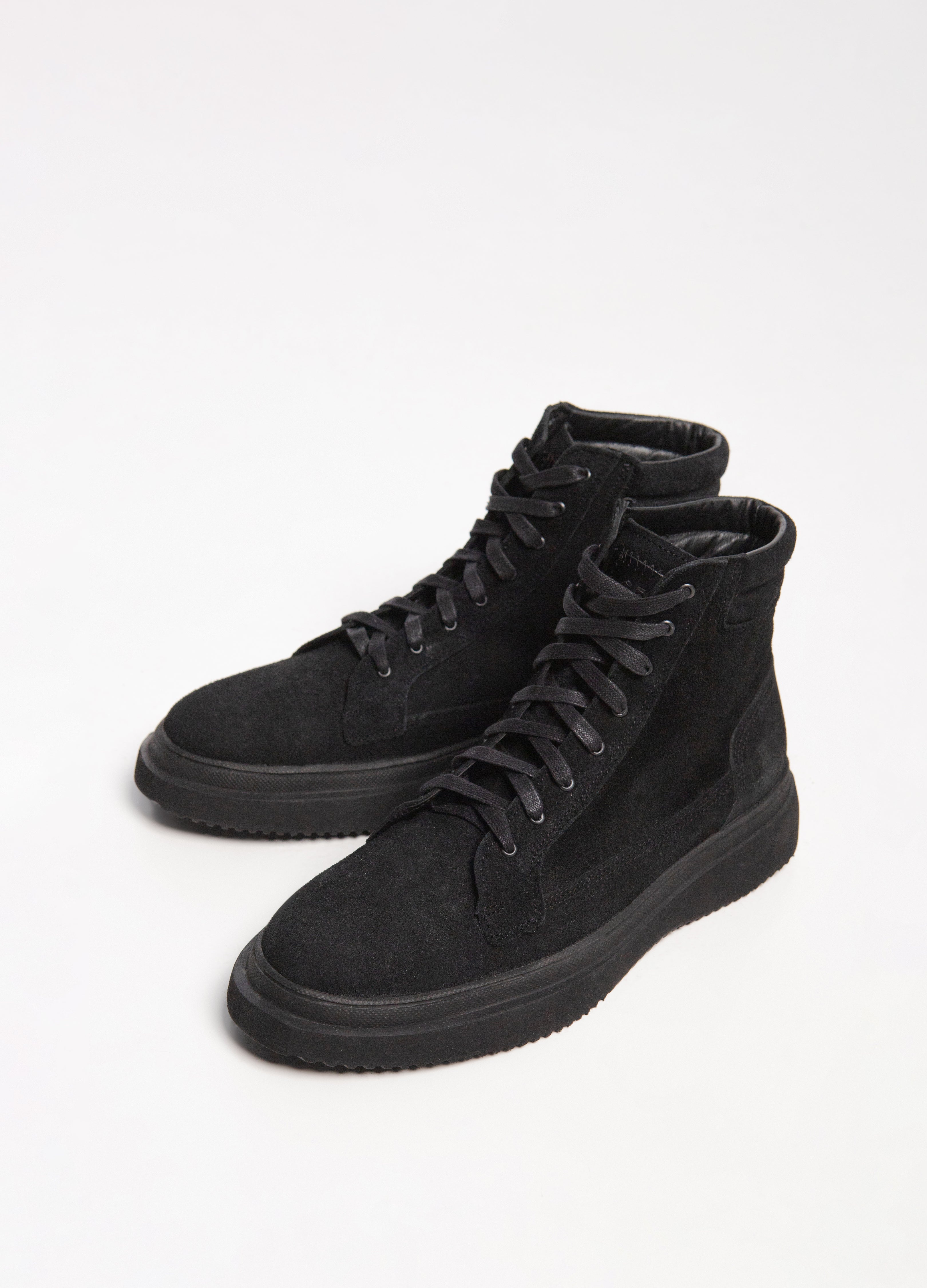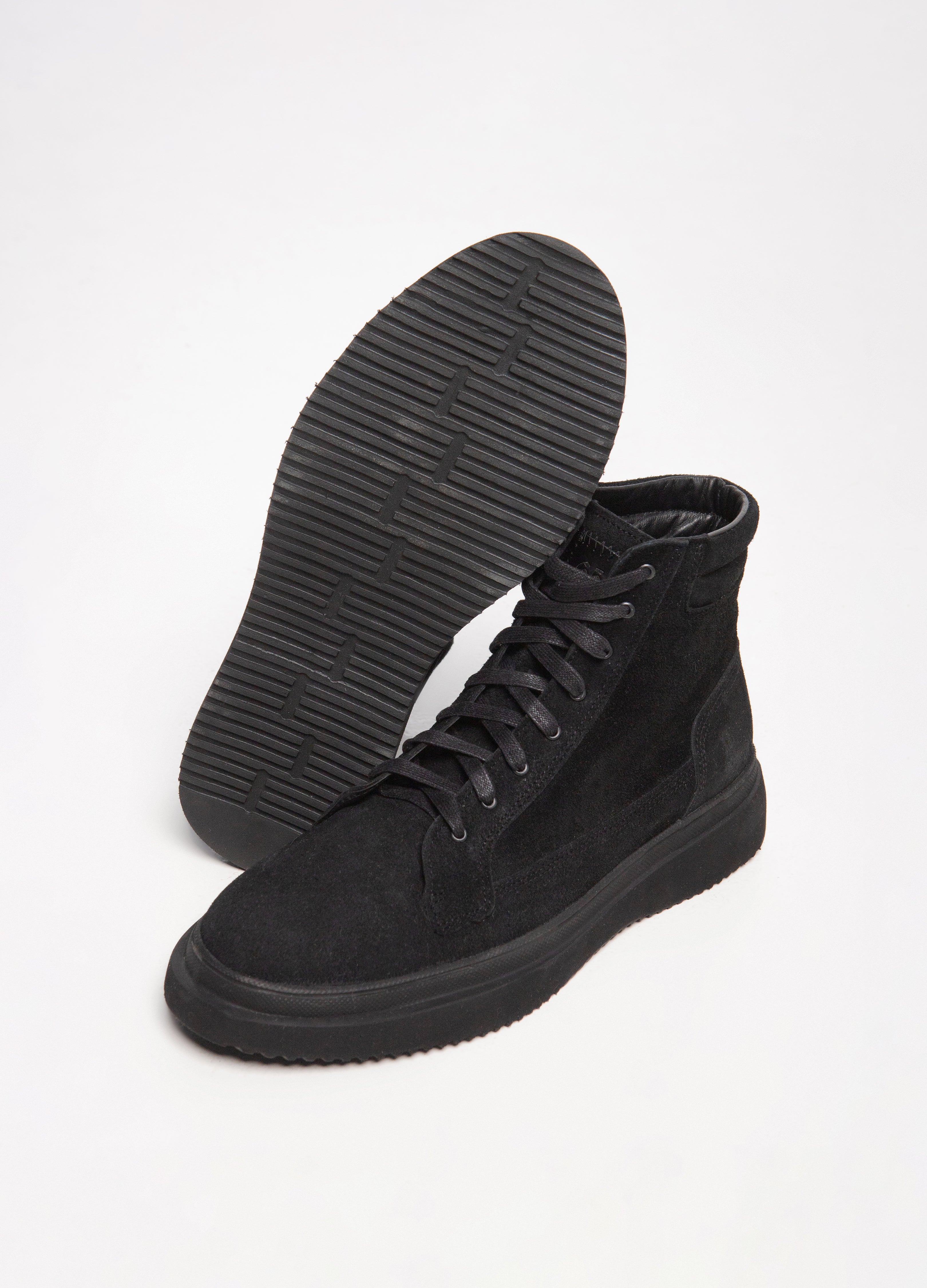 Boots made of black cowhide with a suede finish and an ultra-light sole.