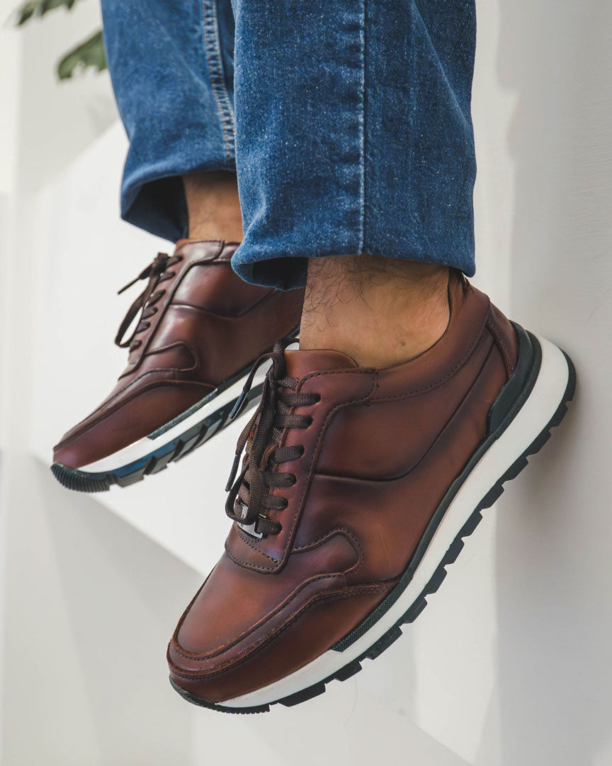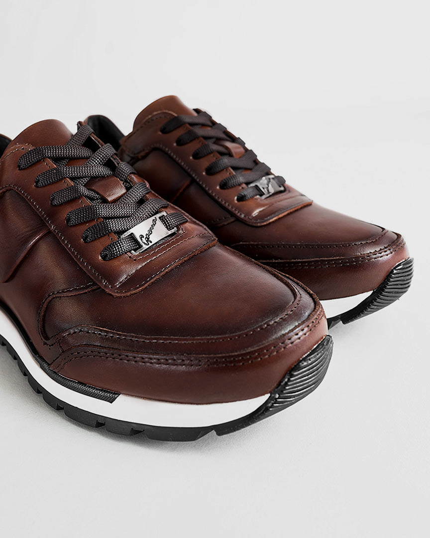 A casual design, made of laced leather, its adjustment is with cotton laces, hand-made shading and its sole is glued, guaranteeing maximum fixation and durability.
