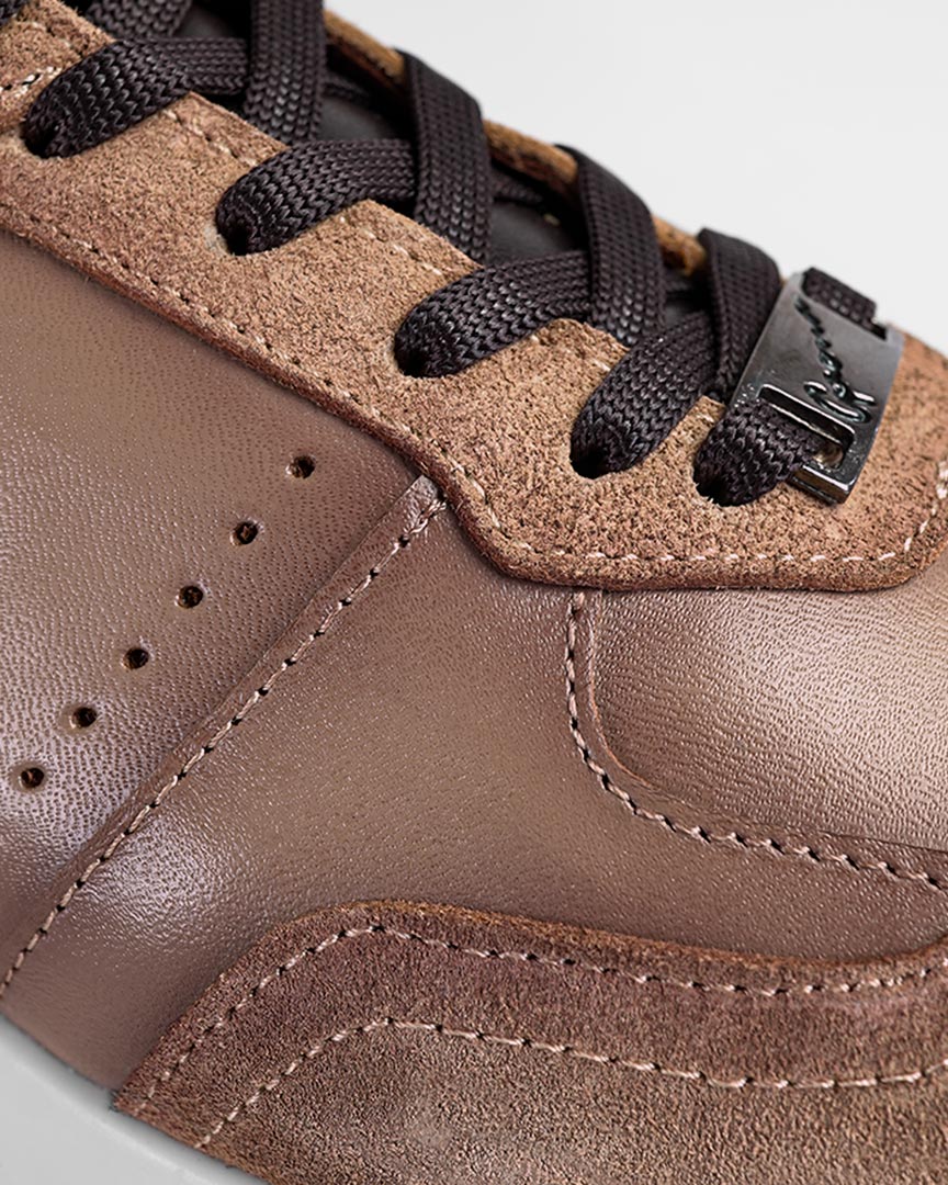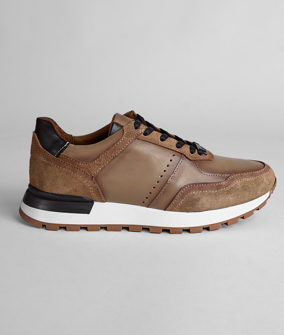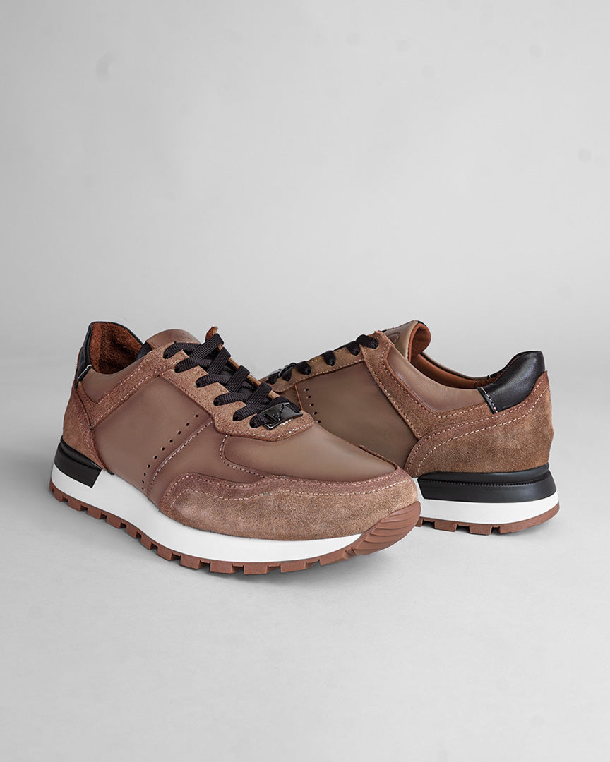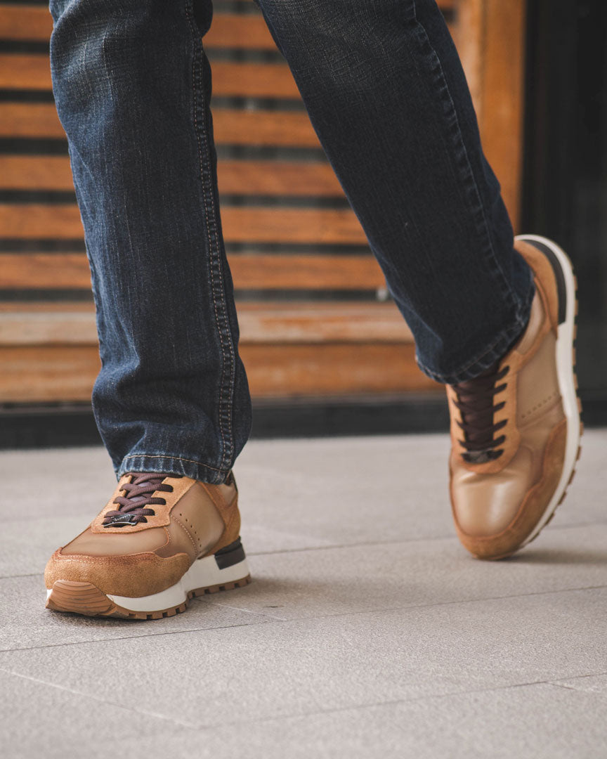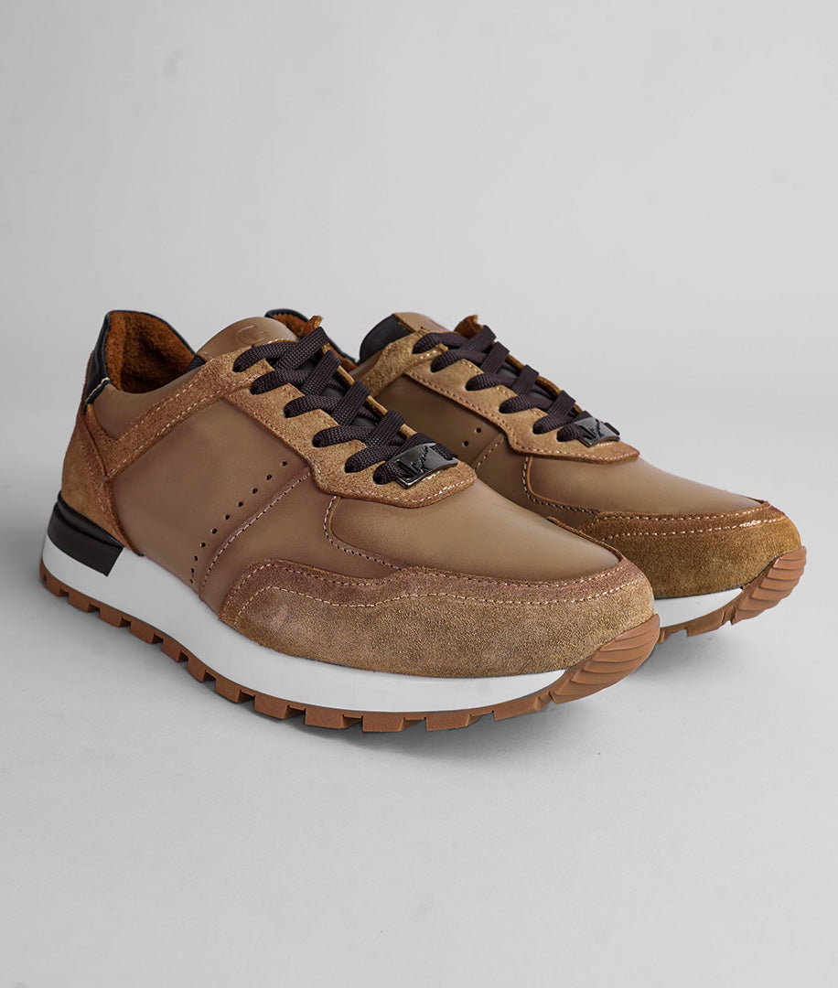 Tenis 100% de piel de Res en color Arena/Beige, en acabado atanado y detalles de acabado en gamuza y flothher, perforado en las laterales, cuenta con ajuste de cordones en algodón y una suela TR que garantiza máxima fijación y durabilidad, tenis casual con estética fresca y aligerada.