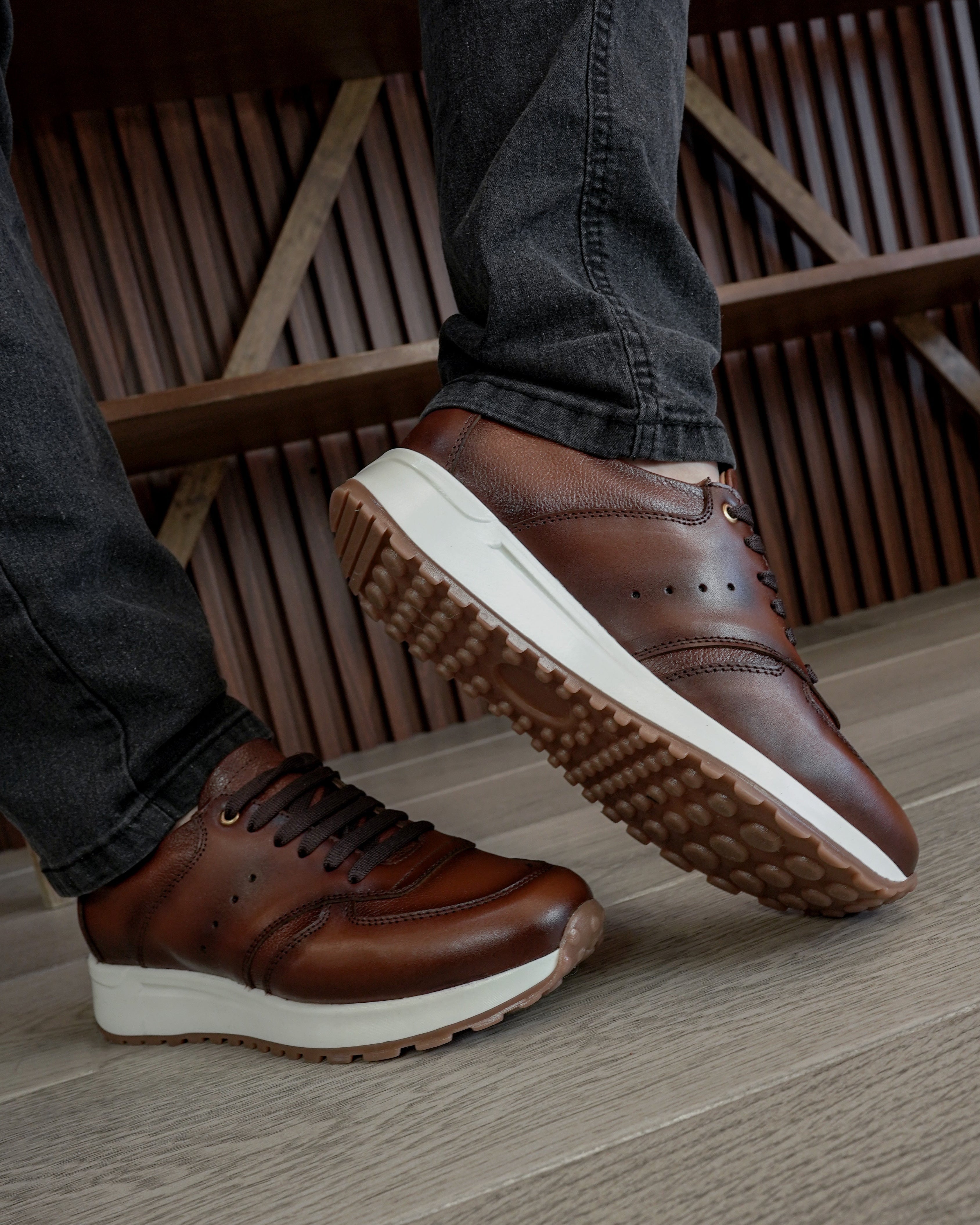 Un tenis casual, con acabado en piel flother y atanado, ajuste con agujetas de algodón, su suela pegada garantiza máxima fijación y durabilidad.