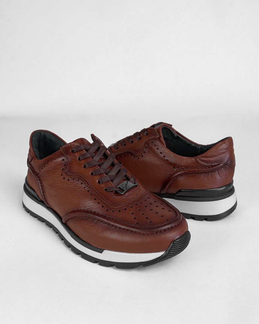 A casual design, made of flother leather, its adjustment is with cotton laces, hand-made shading and its sole is glued, guaranteeing maximum fixation and durability.