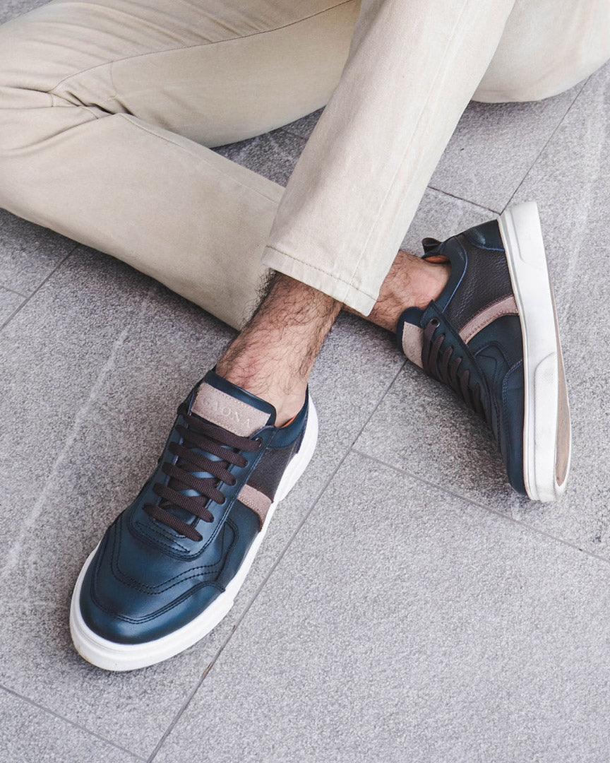 Tenis casual de piel atanada, con detalles de piel flother y piel gamuza fabricado en piel en corte y forro vacuno, plantilla multiconfort y suela tr.