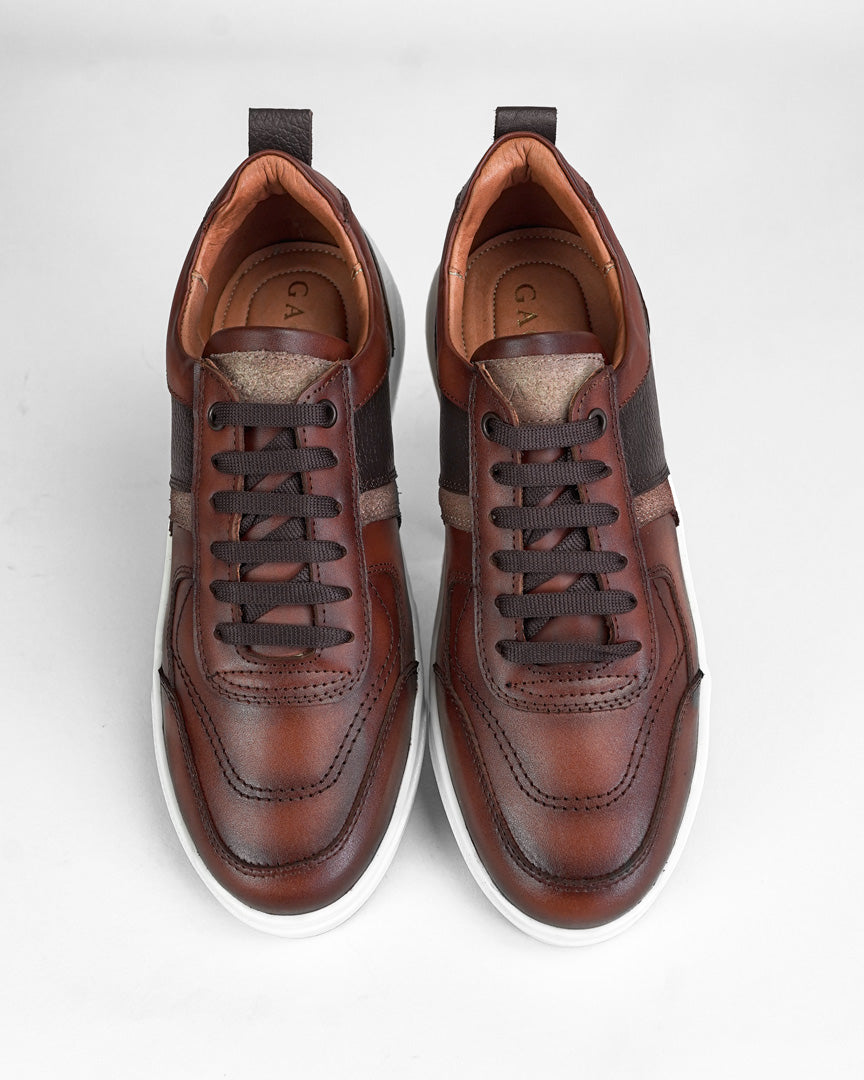 Tenis casual de piel atanada, con detalles de piel flother y piel gamuza fabricado en piel en corte y forro vacuno, plantilla multiconfort y suela tr.