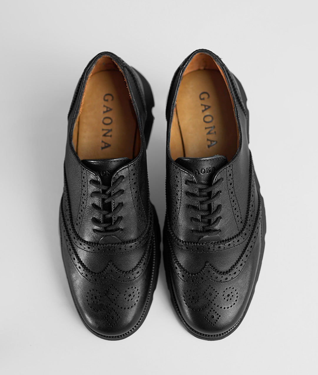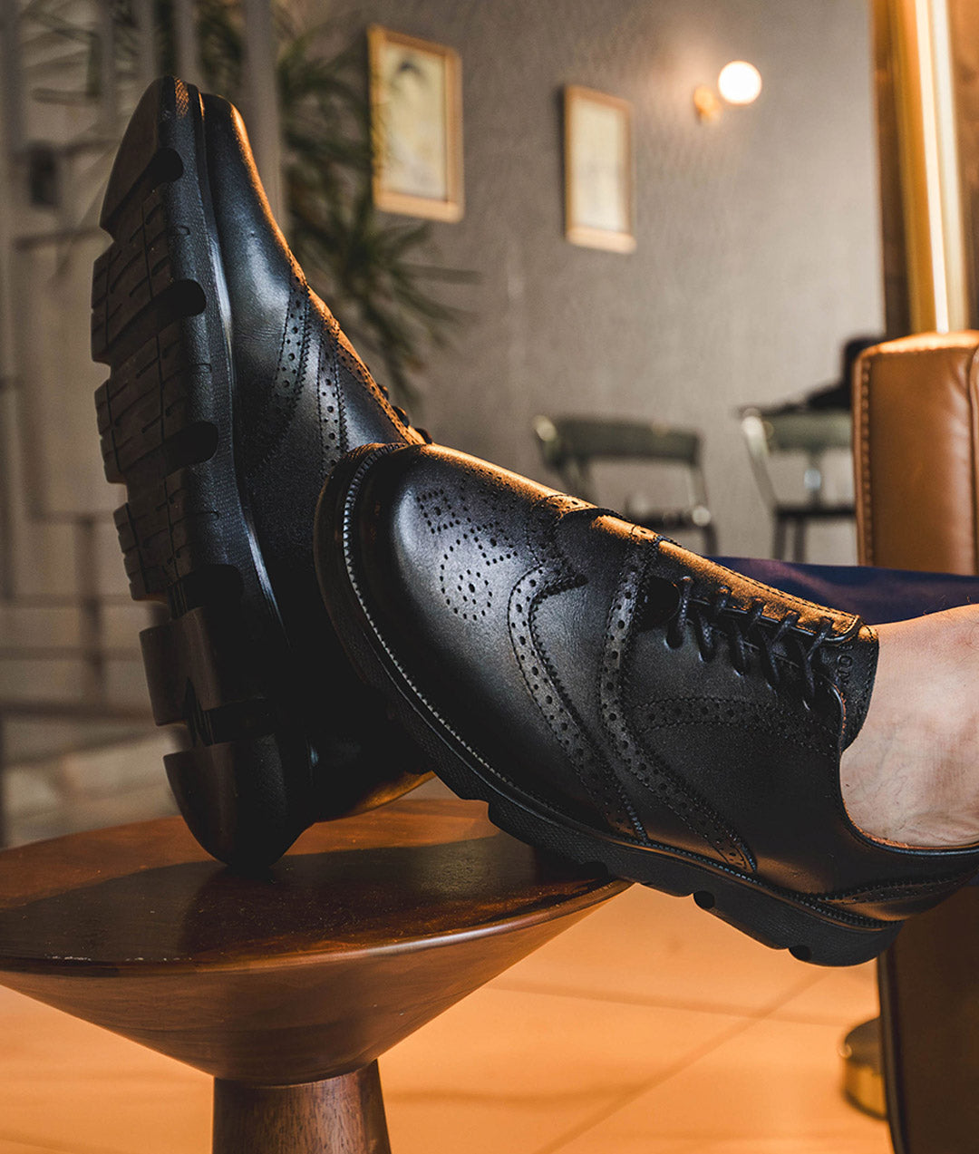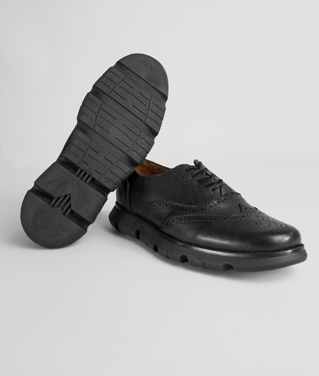 Zapato 100% de piel de Res en color negro en un acabado atanado brillante, estilo Oxford con decoración bostoniana en perforado y suela TR ligero que garantiza máxima fijación y durabilidad, diseño clásico distintivo y modernizado para un uso casual y formal.